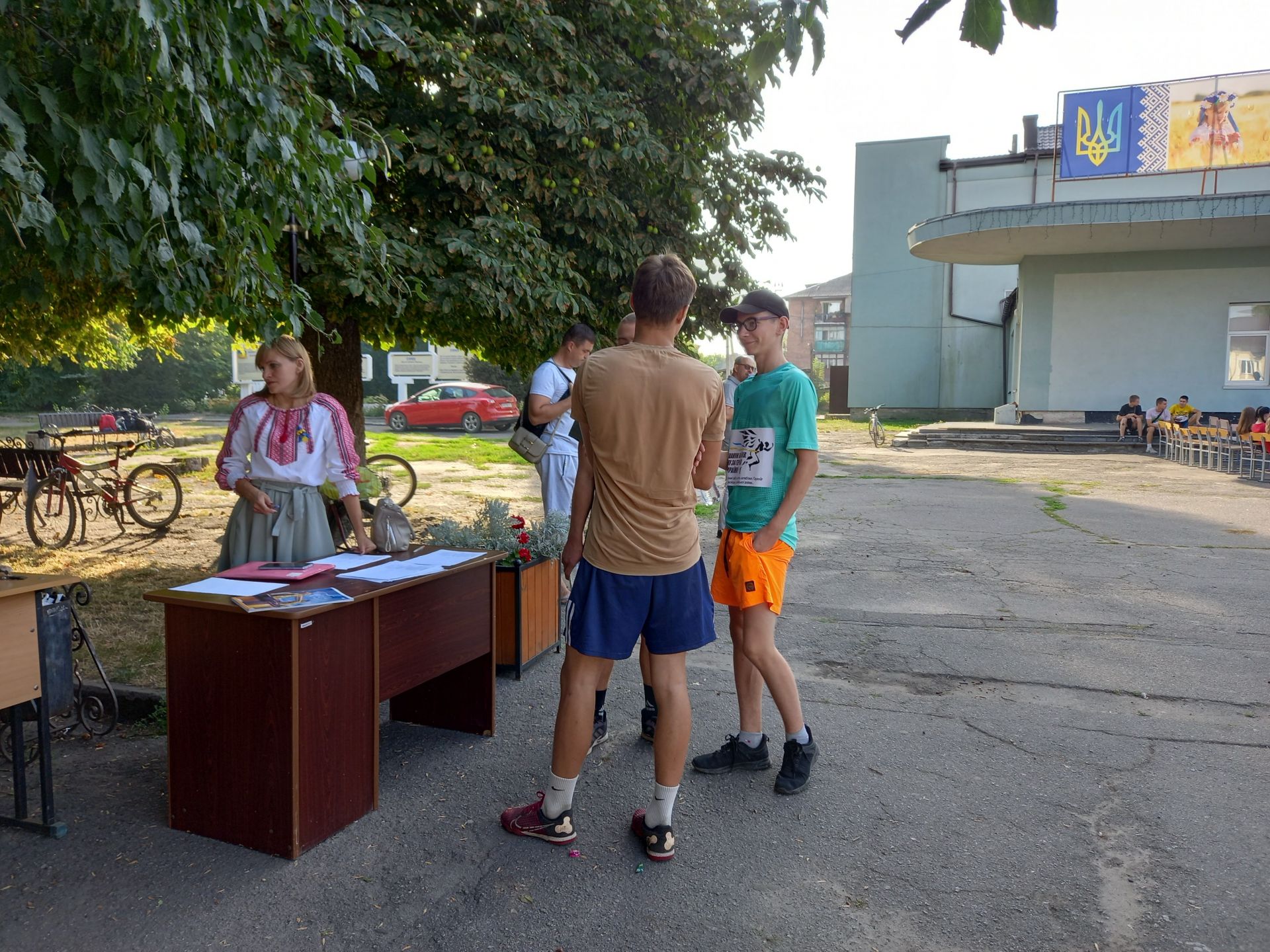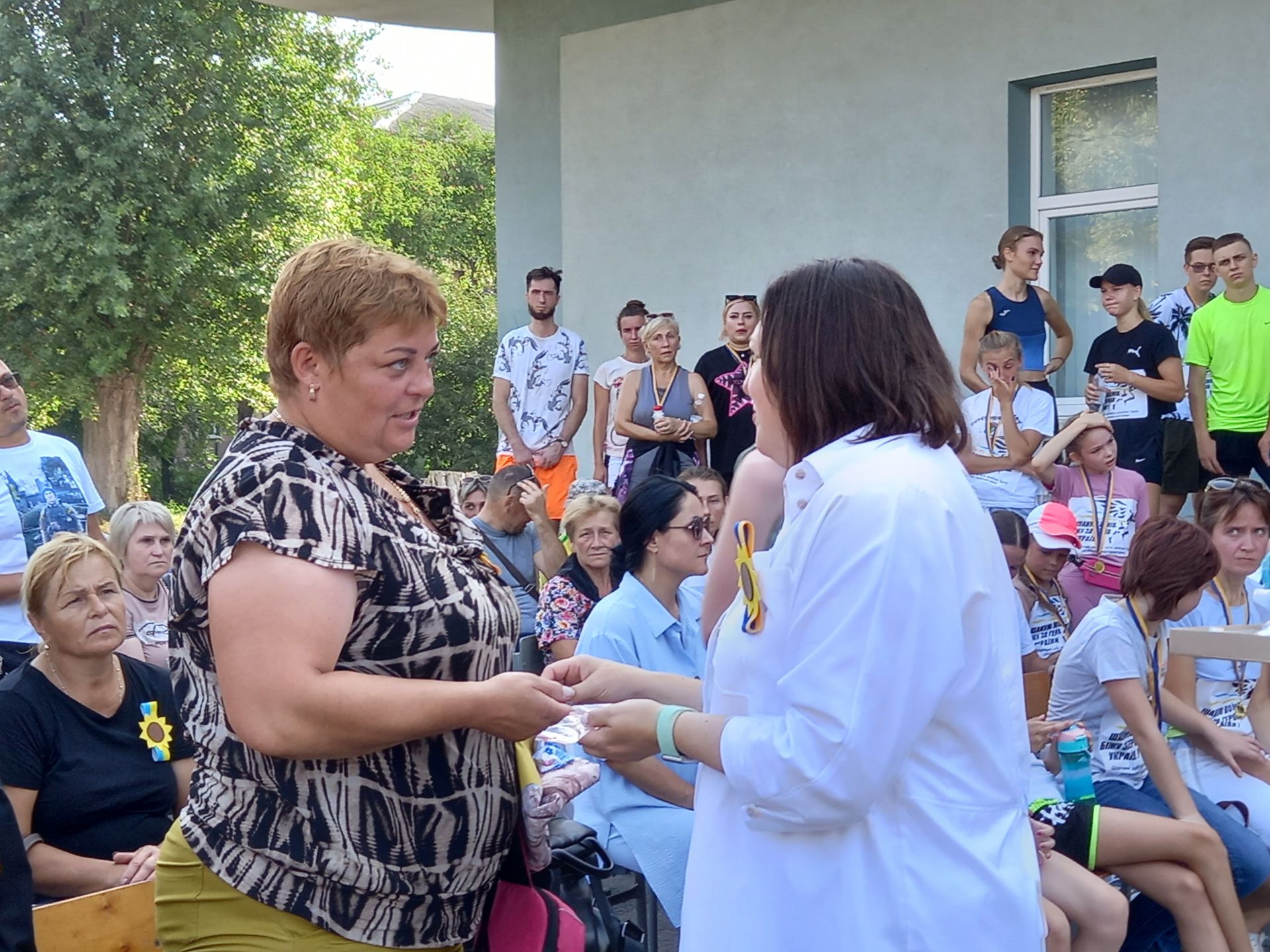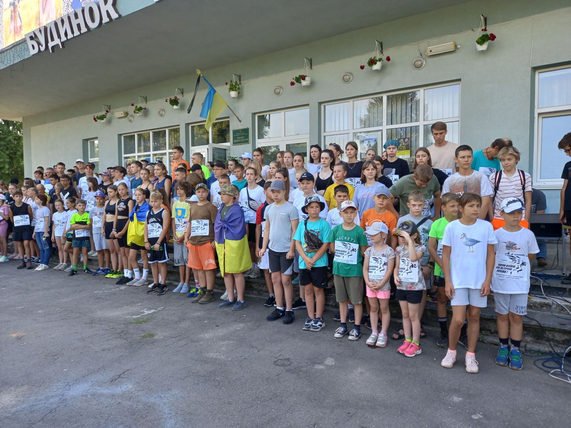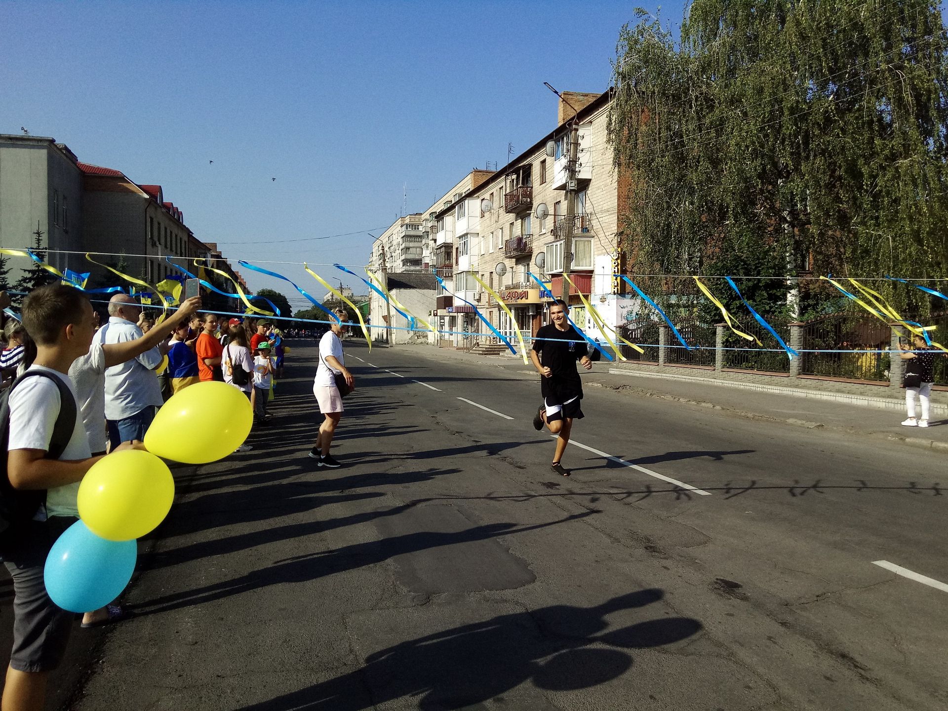 Учасників забігу запросили на лінію старту, яку прикрасили жовто-блакитними стрічками. За сигналом свистка усі дружно почали бігти.