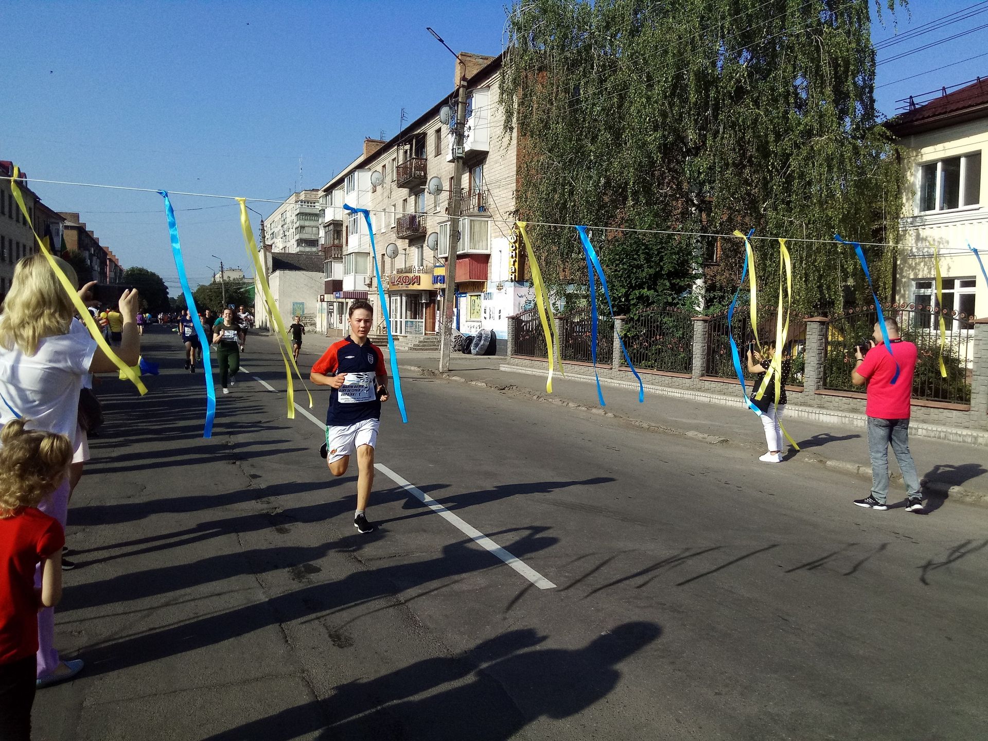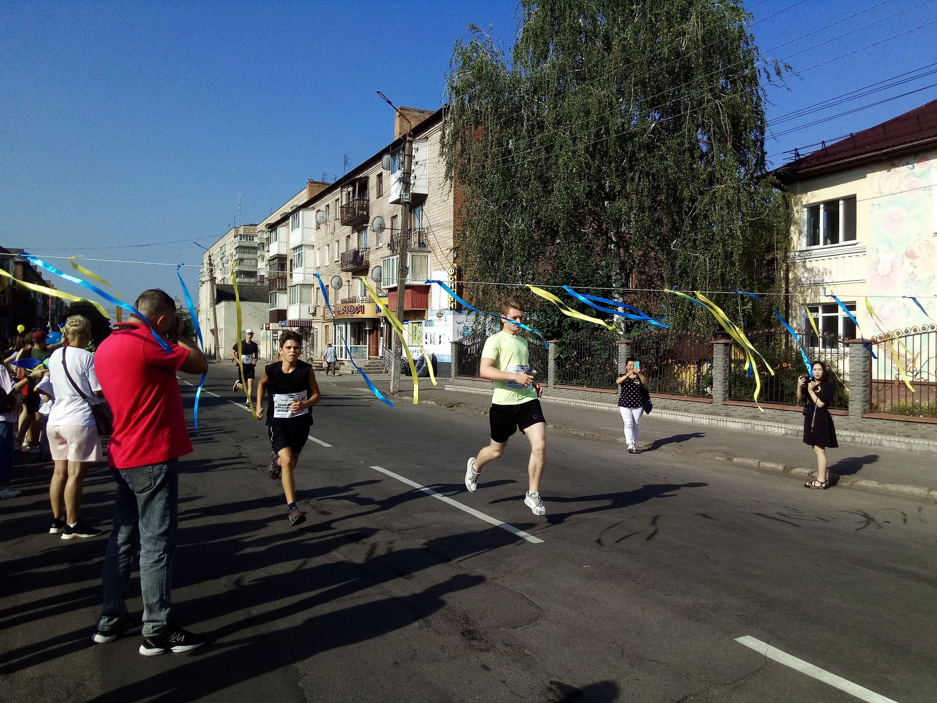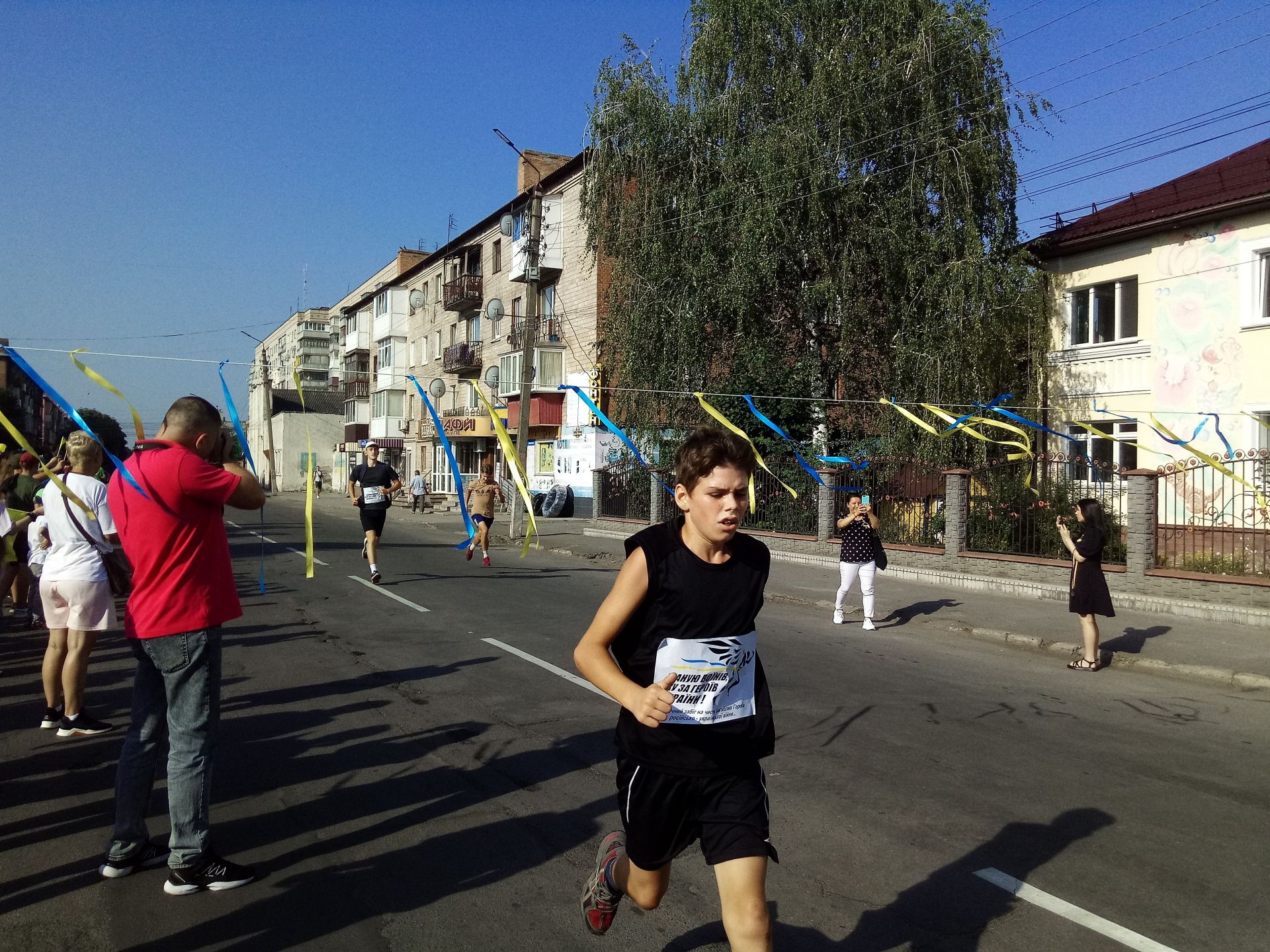 Через 12 хвилин учасники забігу стали повертатися назад на площу. Першим фінішував дев’ятикласник Давид Ляшенко.
