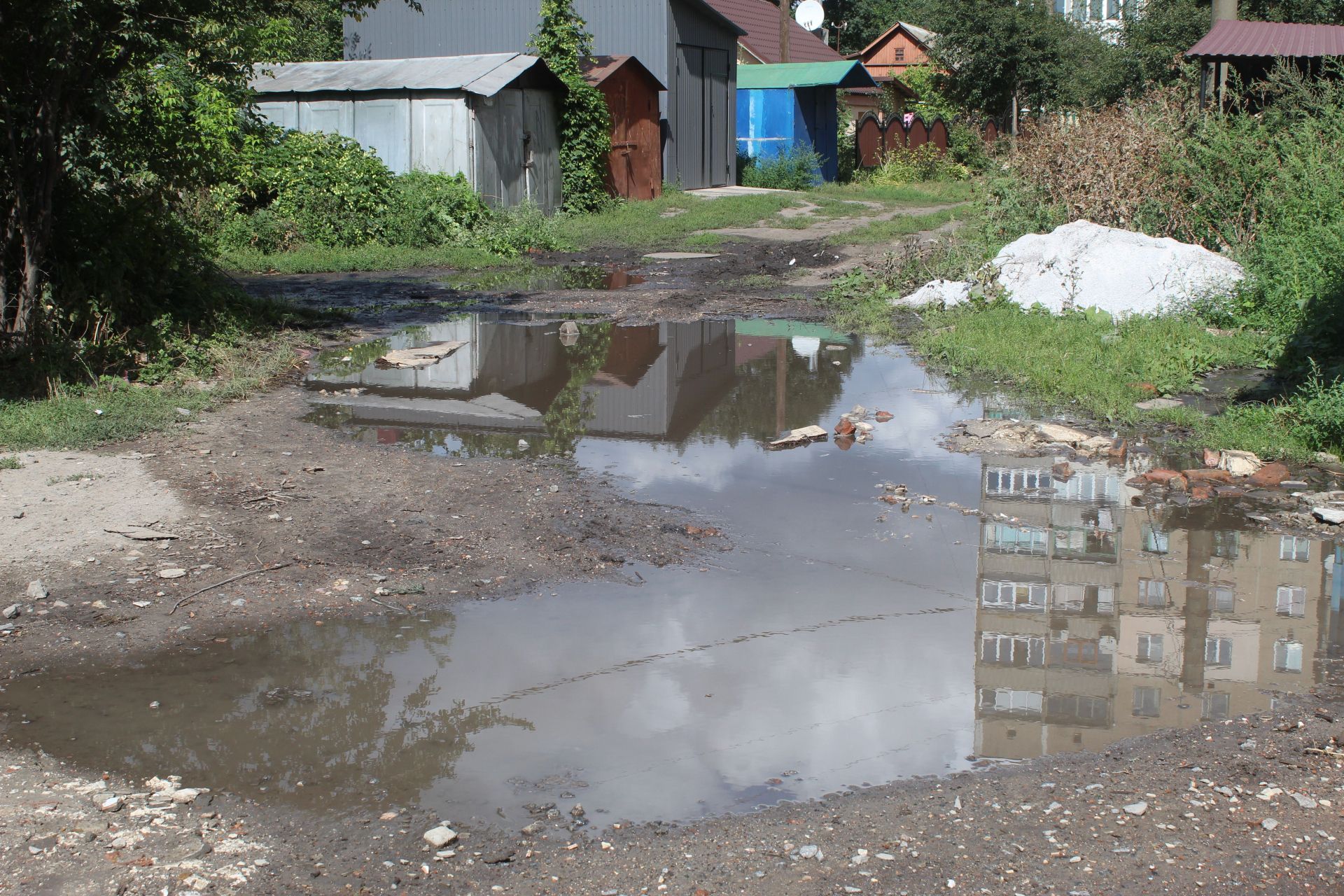 Коли ми говорили з паном Петром, то помітили велосипедиста, що вів свого двоколісного в руках і вдивлявся на дорогу, як йому пройти, щоб не вступити в калюжу. Переконавшись, що це марна справа спробував проїхати водну перешкоду та, наїхавши на вкритою водою цеглину, зупинився, намочивши кросівки у брудній воді.