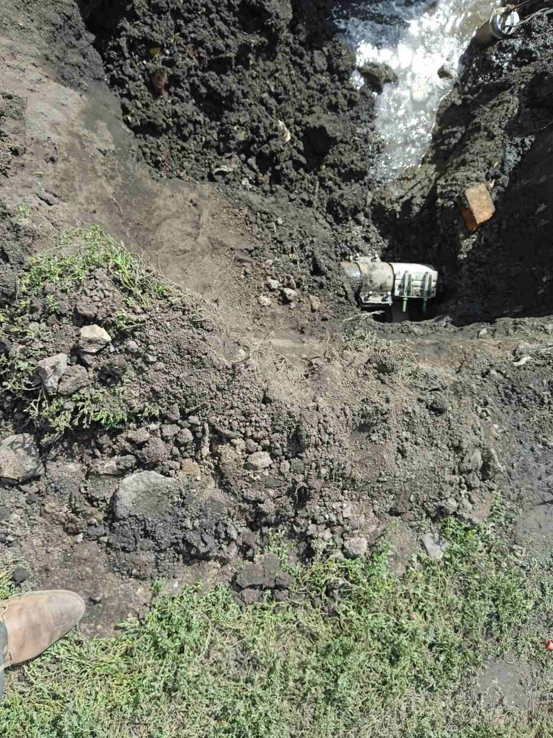 Коли минулої п’ятниці приїхали до кринички водогону, біля неї була розкопана траншея, а саму водну артерію вже облягав один хомут. В сантиметрах 20 від нього з труби проривалася маленькою цівкою вода.