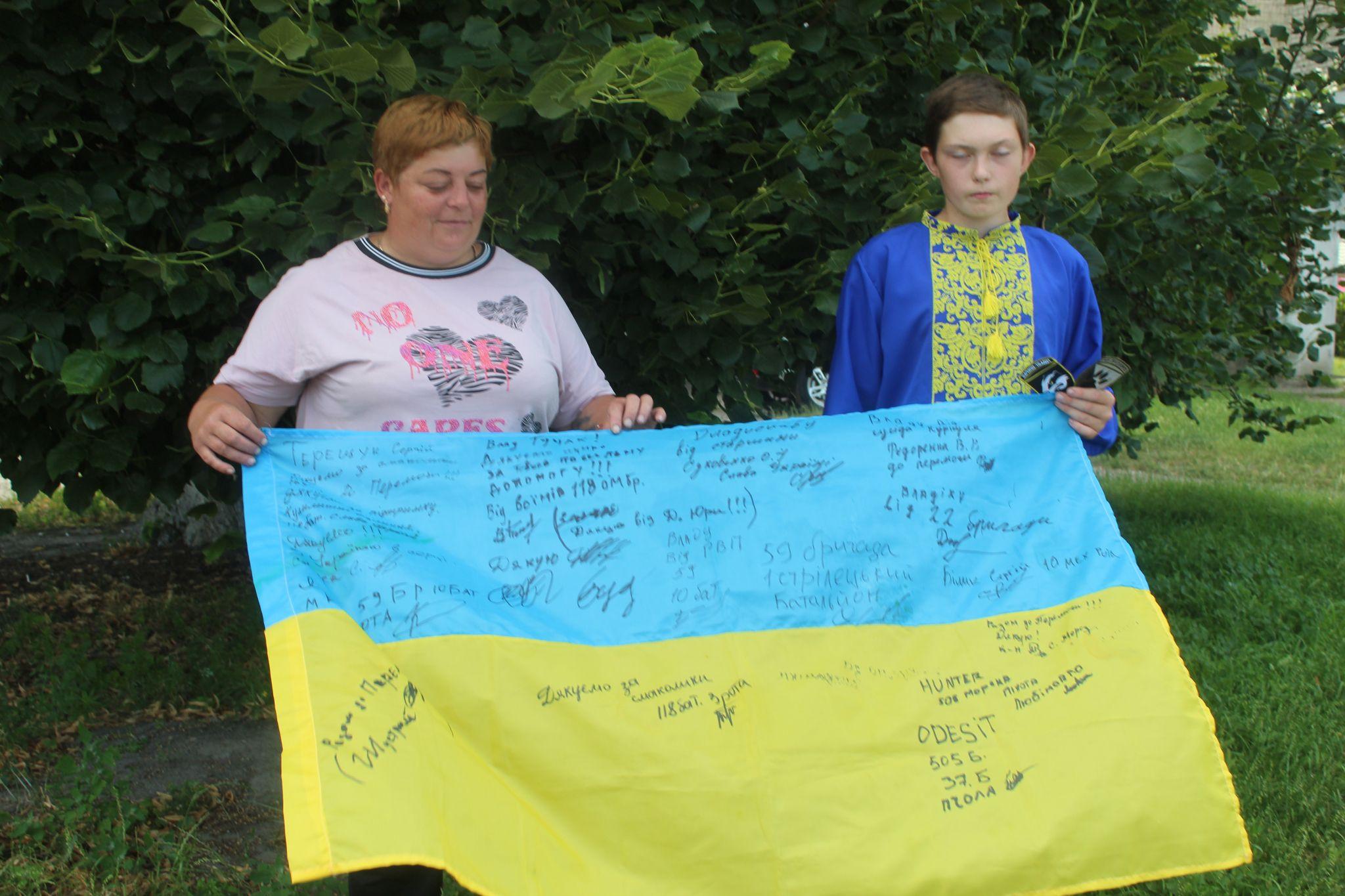 Ольга завжди розповідала бійцям про Влада, а ті щиро дякували підлітку і через Ольгу передавали хлопцеві привіти. Цього разу бійці вирішили подякувати Владу по-особливому. Воїни 4-х батальйонів на державному прапорі написали Владу щирі слова ще й скріпили власними підписами.