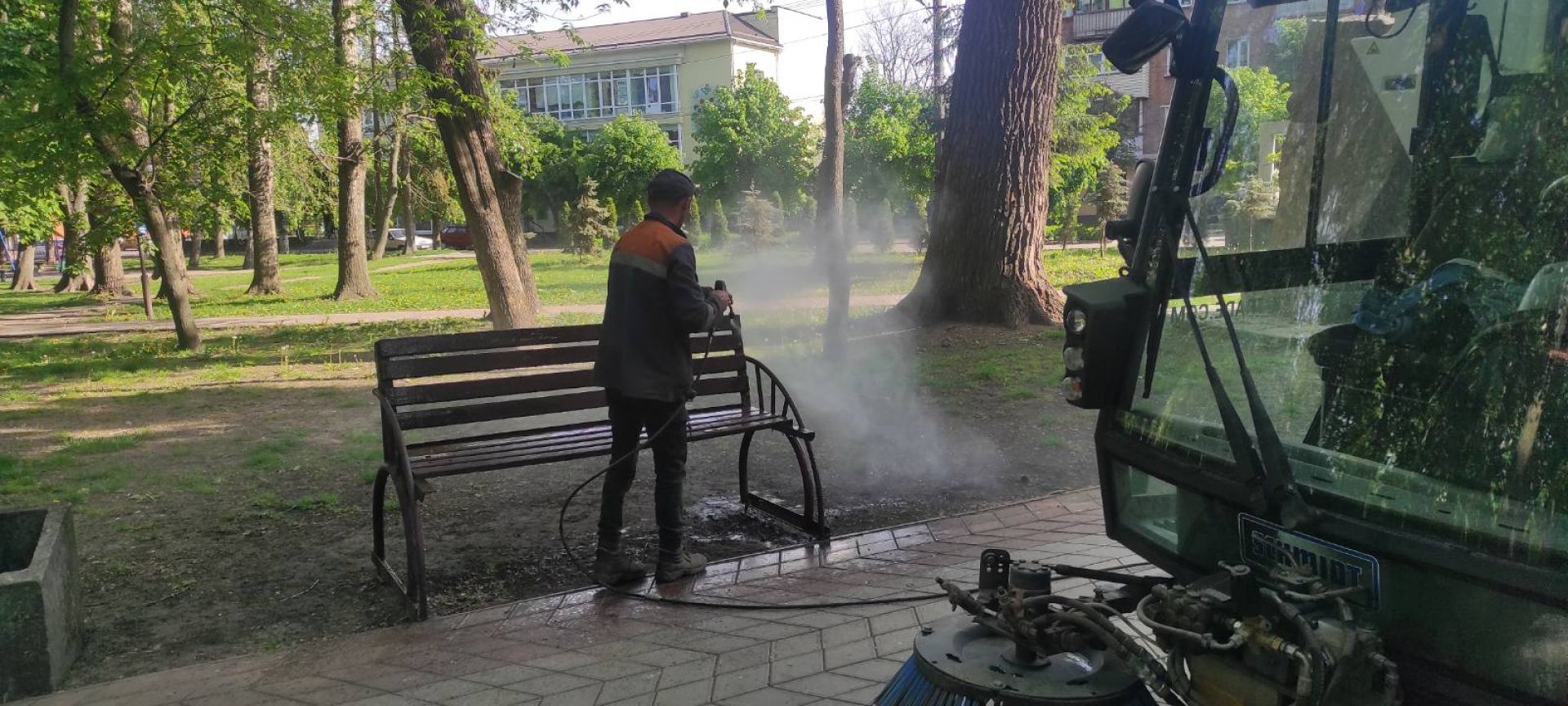 — Вона втягує в себе, як домашній пилосос і гасить водою, щоб пил не здіймався, — відповідає Добржанський. — В ній ще встановлений потужний кьорхер, який використовується як мийка. Він під’єднується до машини і має шестиметровий шланг, яким можна пам’ятники мити. Ми мили пам’ятник на ПРБ перед покладанням квітів. У сквері лавочки ним постійно миємо і плитку тротуарну.