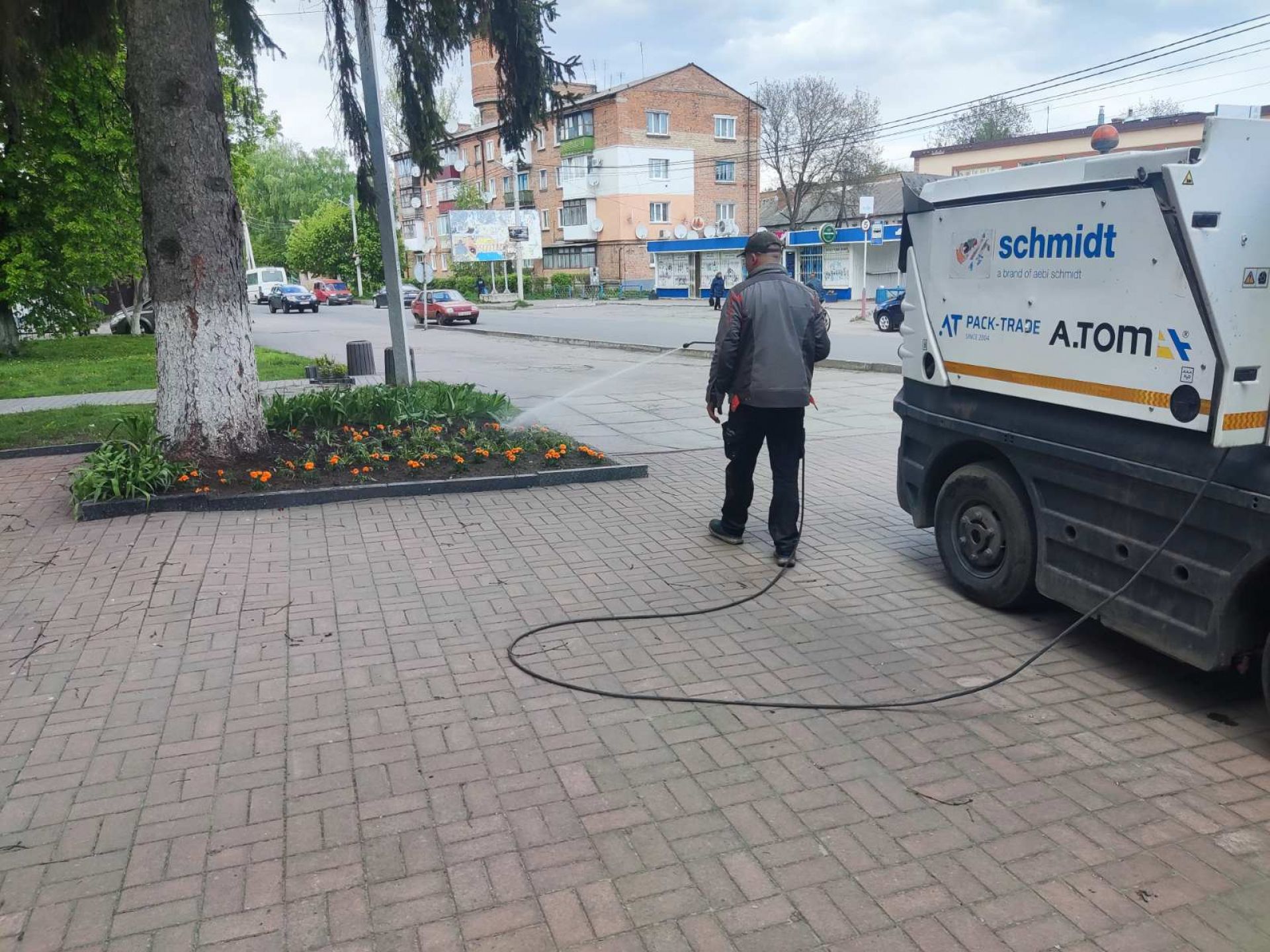 У комунальному підприємстві повідомляли, що машиною будуть чистити узбіччя, тротуари та сквер. Та чомусь на вулицях міста досі метуть пилюку і гілки двірники з мітлами і лопатами.