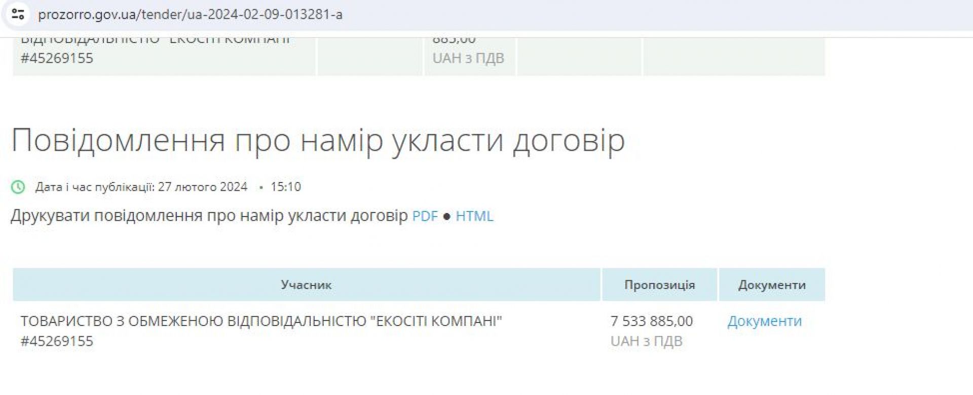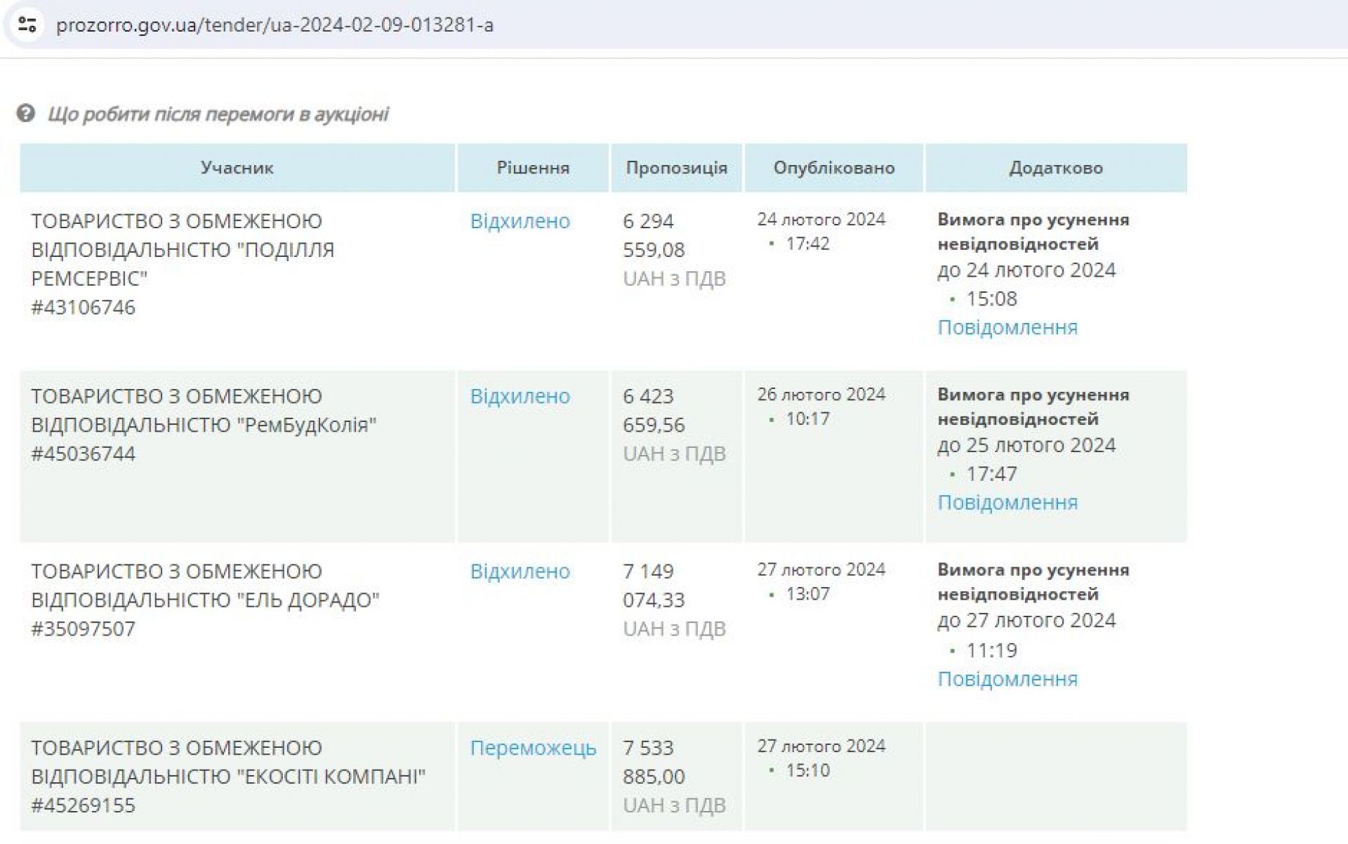 Пропозицію «Поділля Ремсервісу», так само як і компаній «РемБудКолія» та «Ель Дорадо» відхилили. Договір вирішили укласти із «Екосіті Компані».