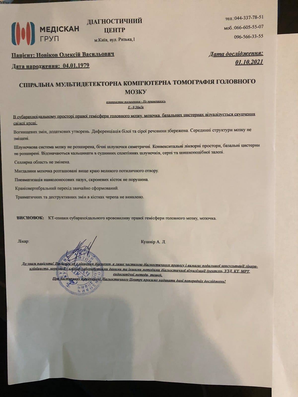 - У 42-річного Олексія Новікова стався субарахоідальний крововилив правої гемісфери головного мозку. Такий висновок після обстеження зробили столичні лікарі. Щоб врятувати життя батька двох дітей, чоловіка та сина потрібні чималі гроші.