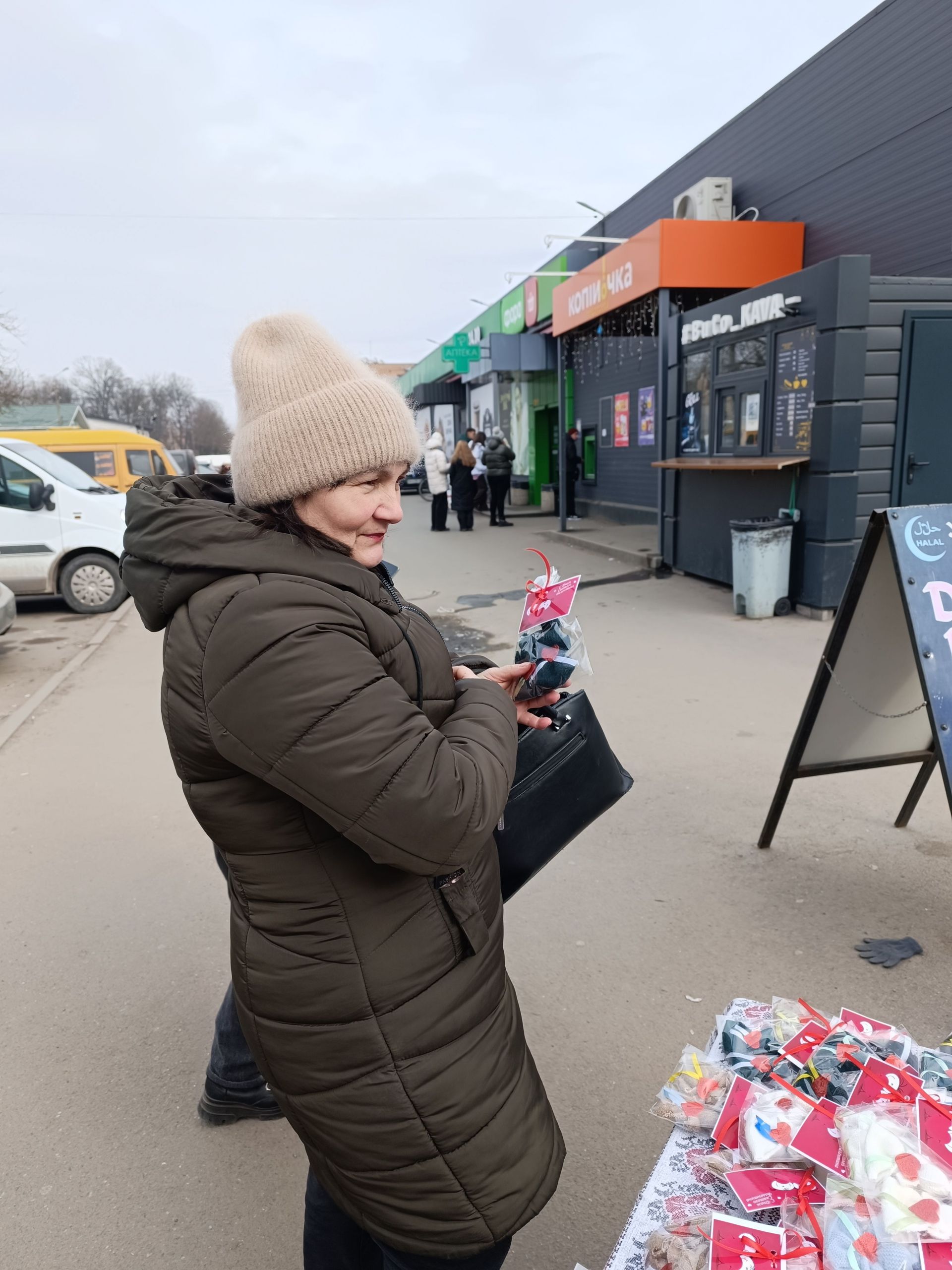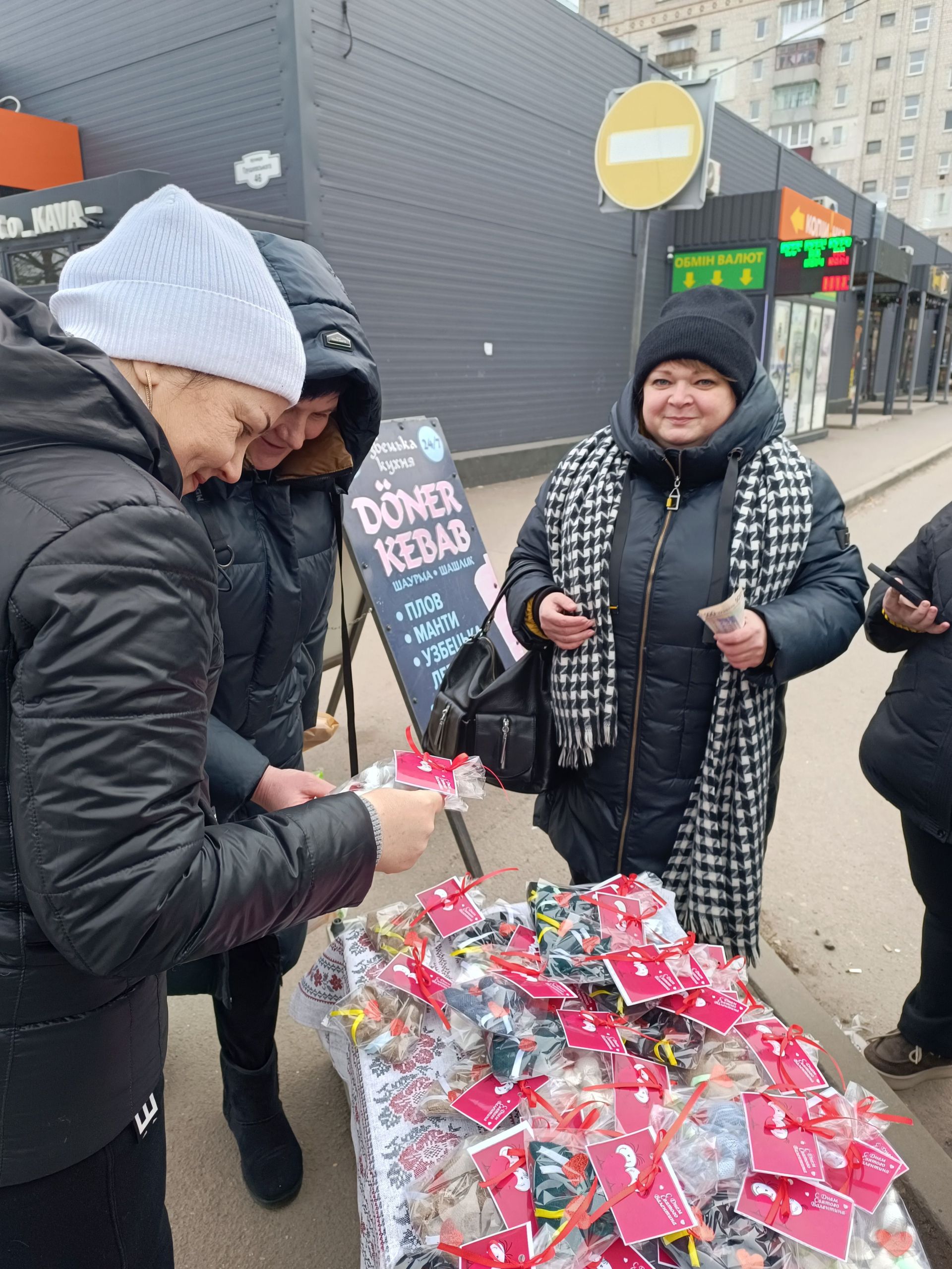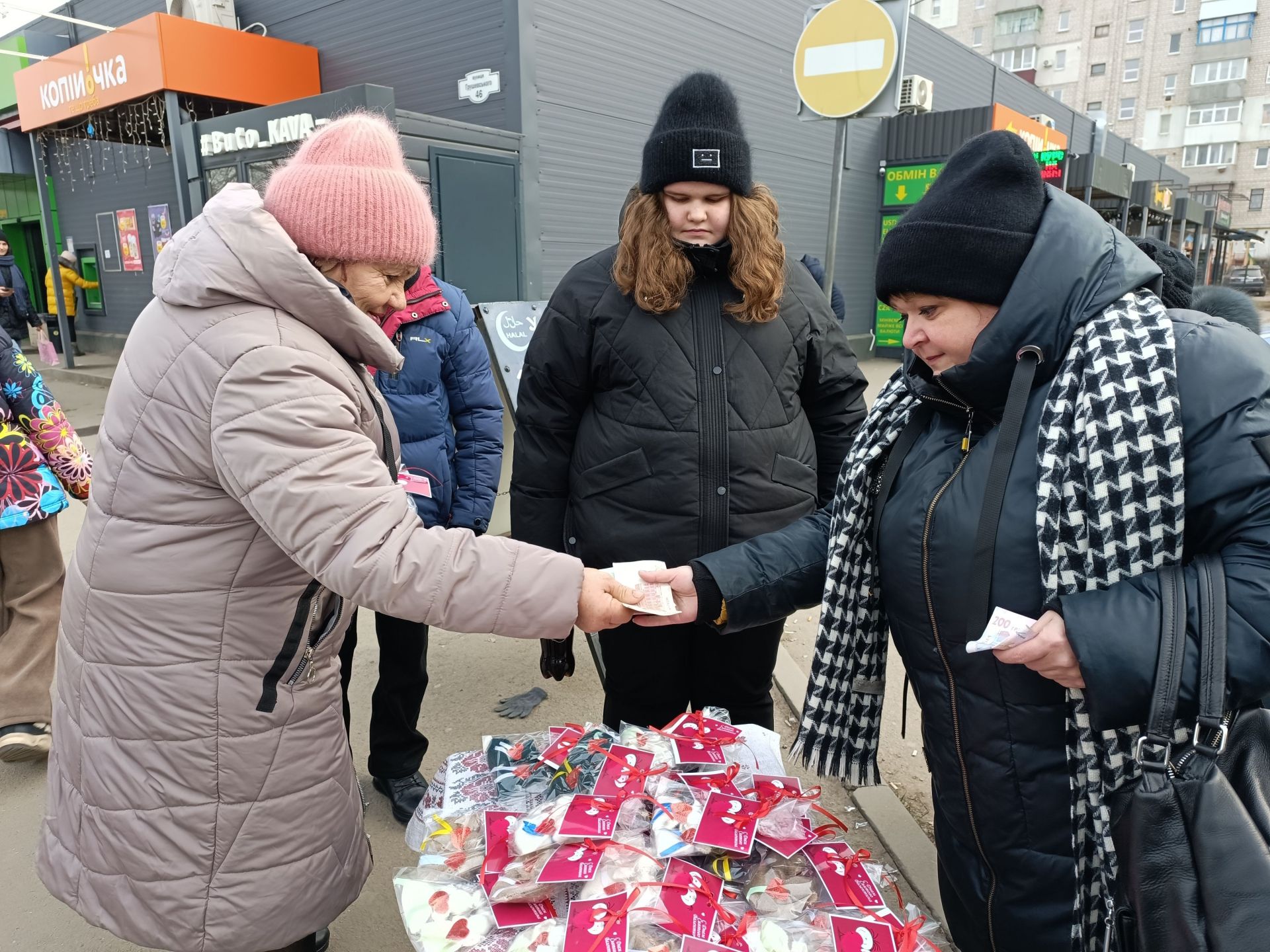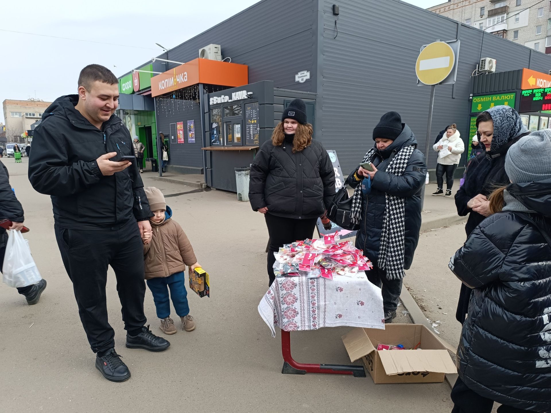 П’ятниця, 14 лютого. На годиннику майже 13-та. Поруч із супермаркетом «Фора» зібралися центрівчани Віталіна, Єва, Варвара, Ярина, Артур, Дмитро, Іра, Катя, Діана, Марта та Аня разом із керівниками гуртків «Школа лідерів» Ольгою Ткачук та «Берегиня» Наталією Баштовою. На столику перед ними упаковки із незвичними валентинками. Всередині кожної — пара крихітних зайчиків, прикрашених стрічками та сердечком із фоамірану.