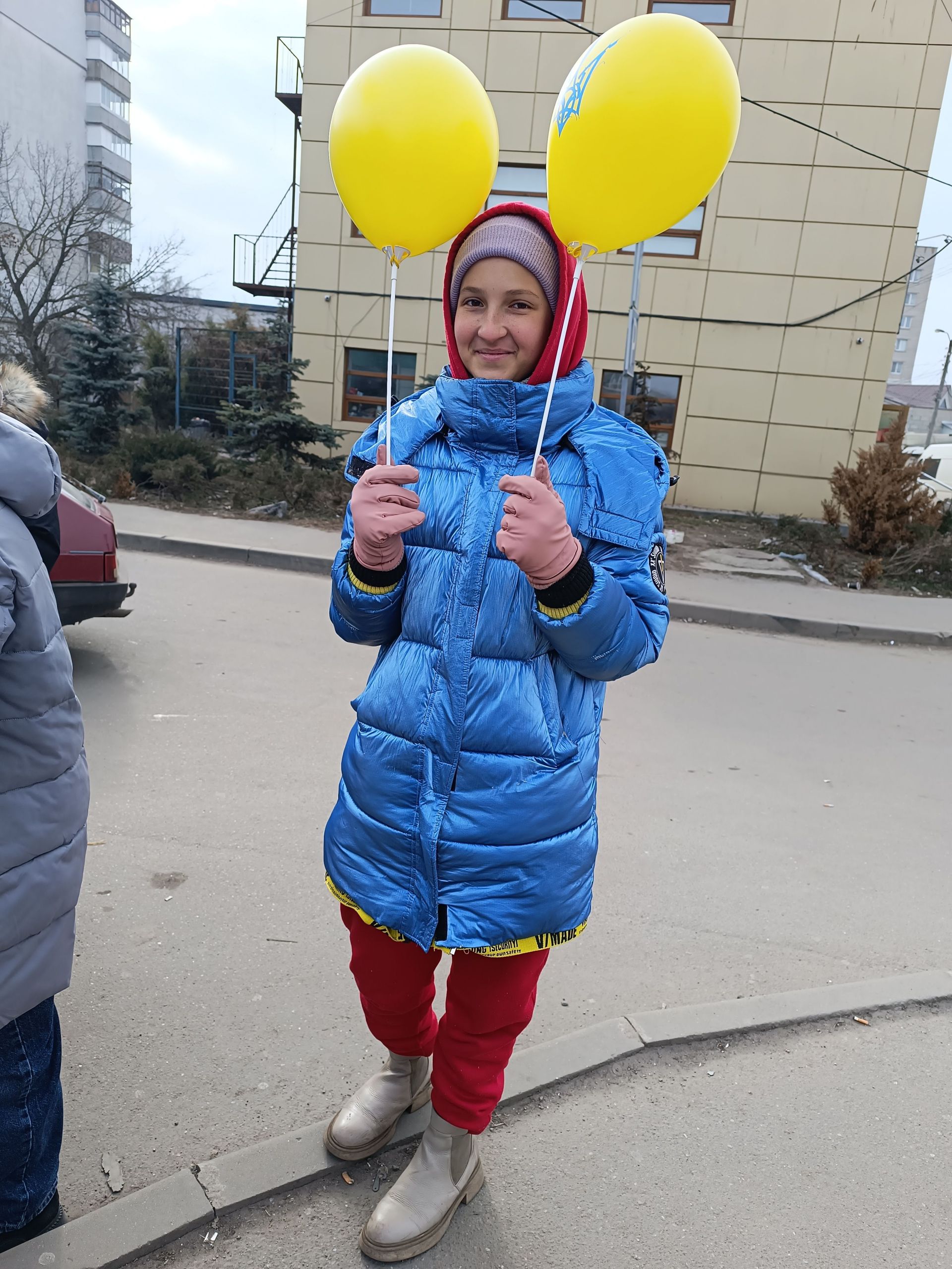 Поки покупці збираються, Віталіна, Єва та Марта надувають повітряні кульки із патріотичними зображеннями. Їх також продаватимуть за донат охочим.
