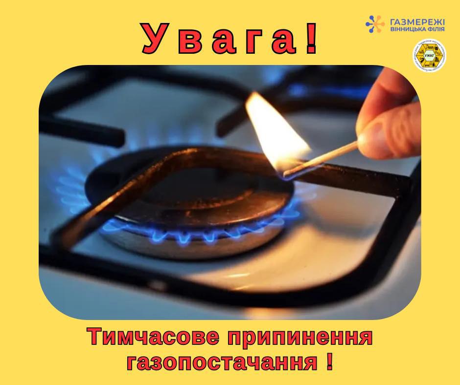 - Козятинська дільниця Вінницької філії «Газорозподільні мережі України» повідомляє про тимчасове припинення газопостачання у Козятині.