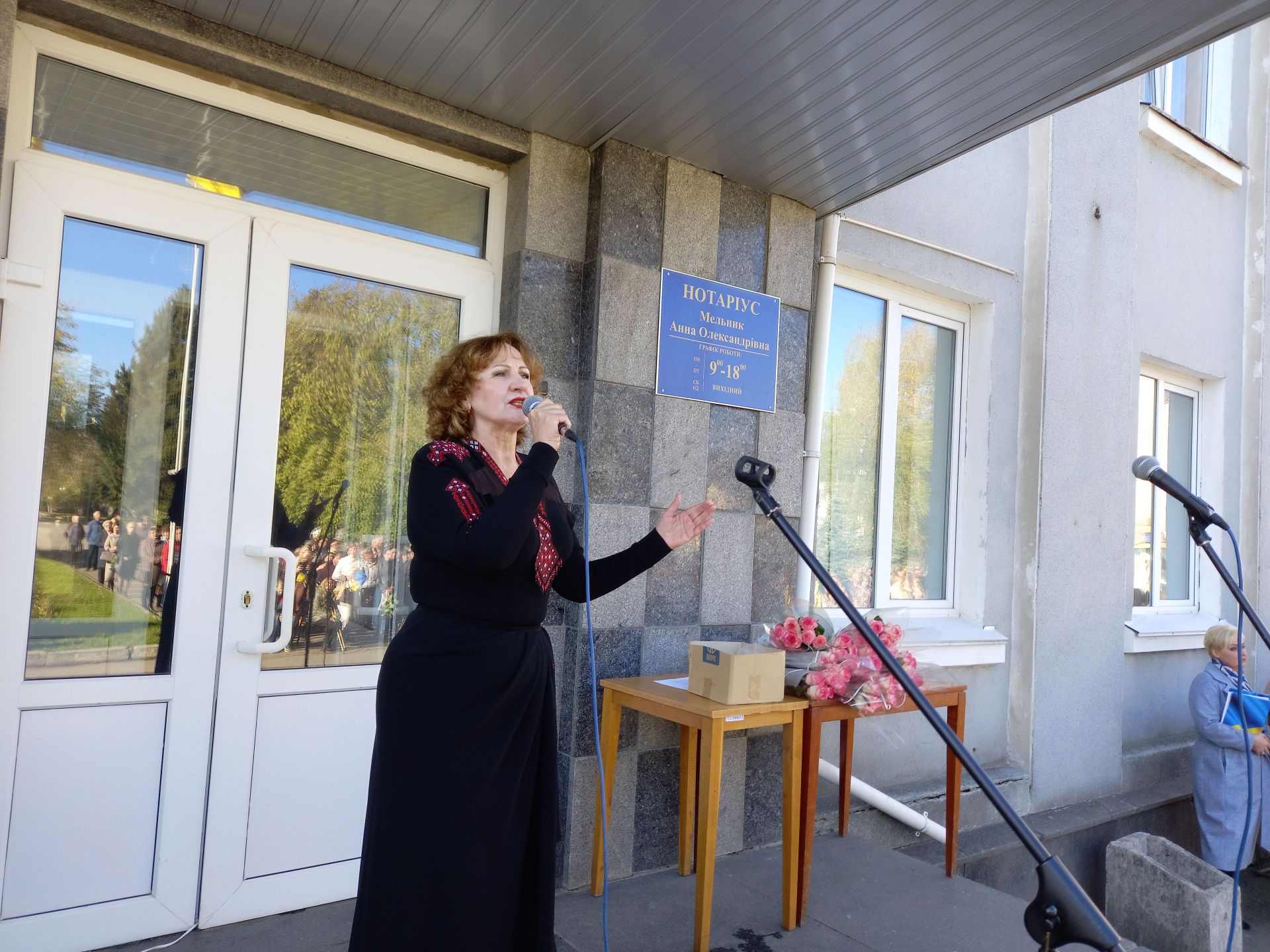 На завершення першої частини урочистостей вокальний колектив «Струни серця» подарував гостям заходу дві пісні — «Біля тополі» і «Повертайся живим», а Олена Пантєлєєва заспівала «Я молюсь за тебе, Україна».