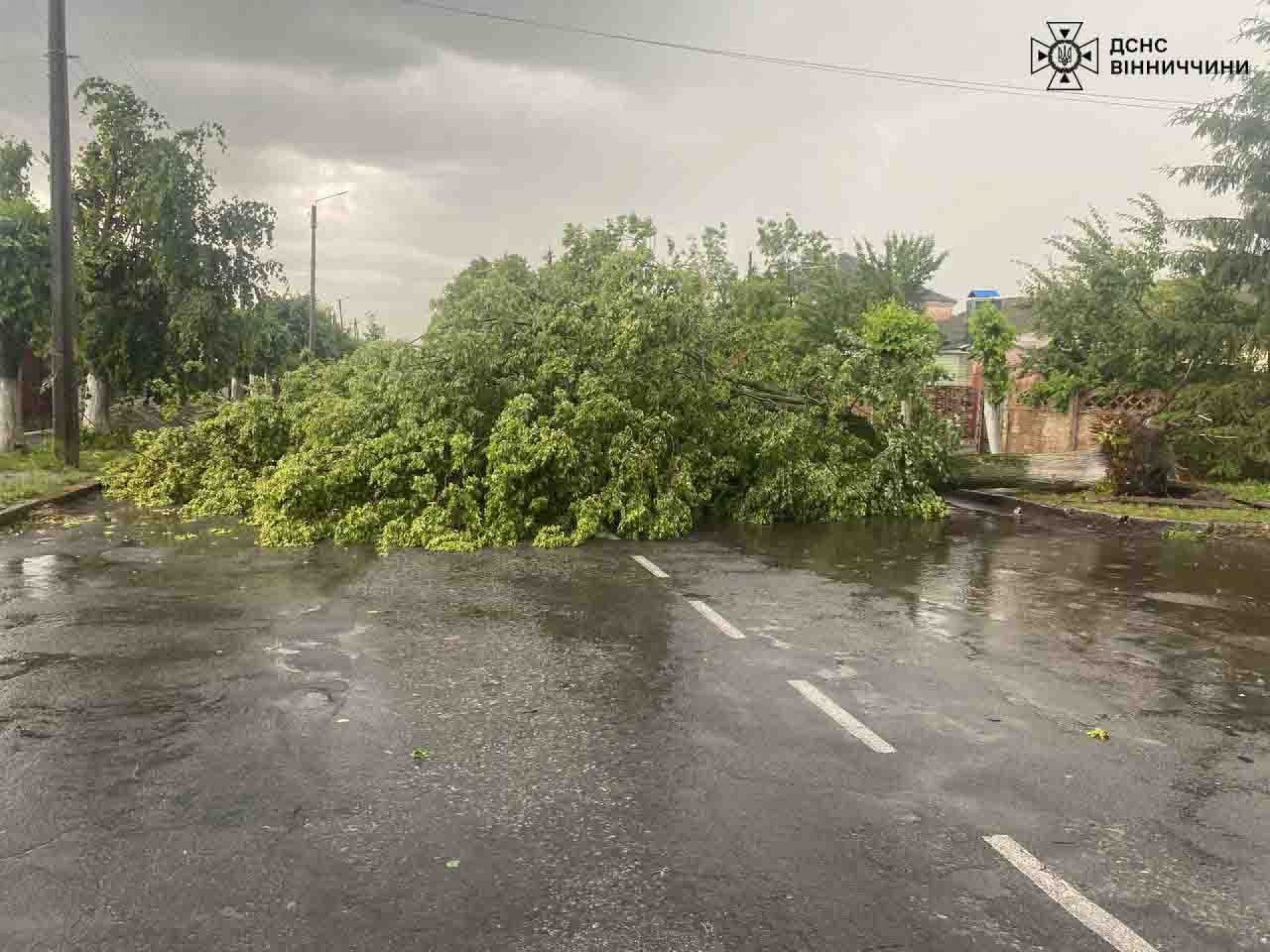 Як інформують у ДСНС, найбільшу кількість дерев — 13, надзвичайники розкряжували та прибрали на автошляху м. Хмільник-с. Журавне, ще 5 — прибрали з проїжджої частини дороги на вул. Монастирській в м. Хмільник. Одне із дерев впало на автомобіль екстреної медичної допомоги. На щастя, ніхто з людей не постраждав.