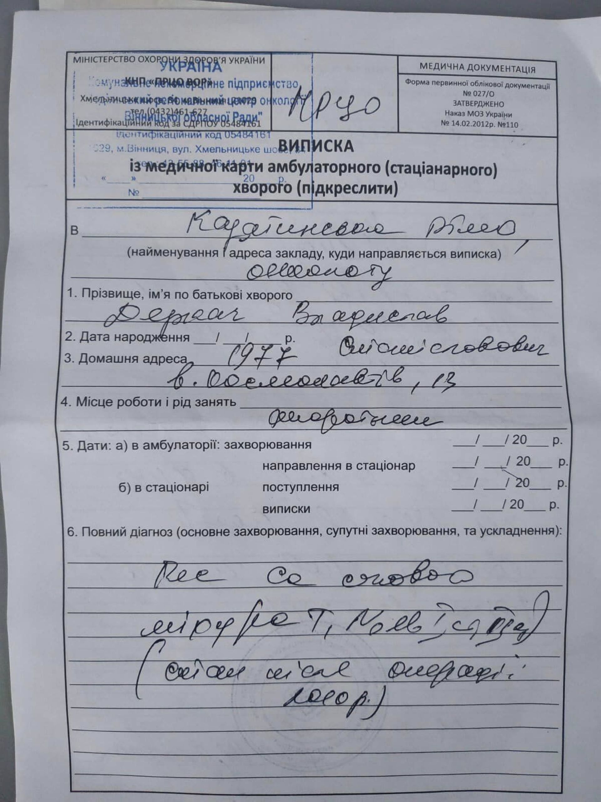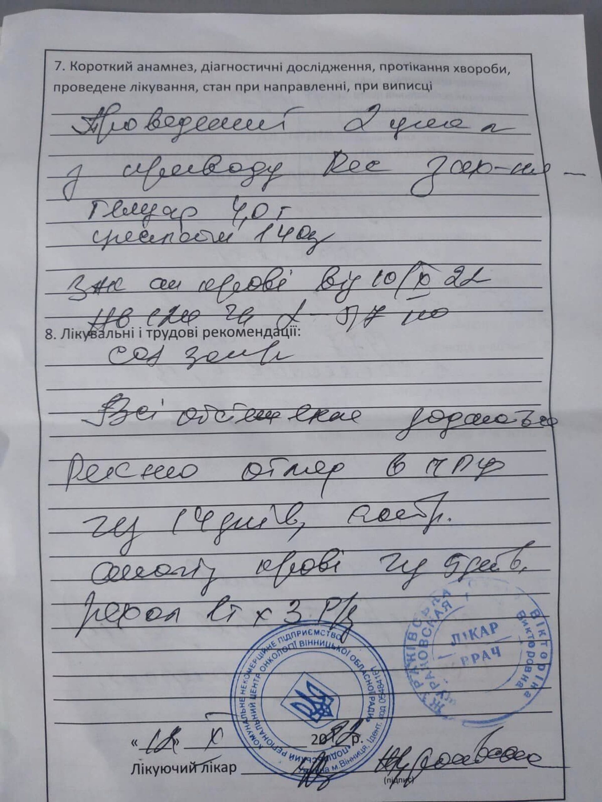Марія розмістила фото виписки з медичної картки батька:
