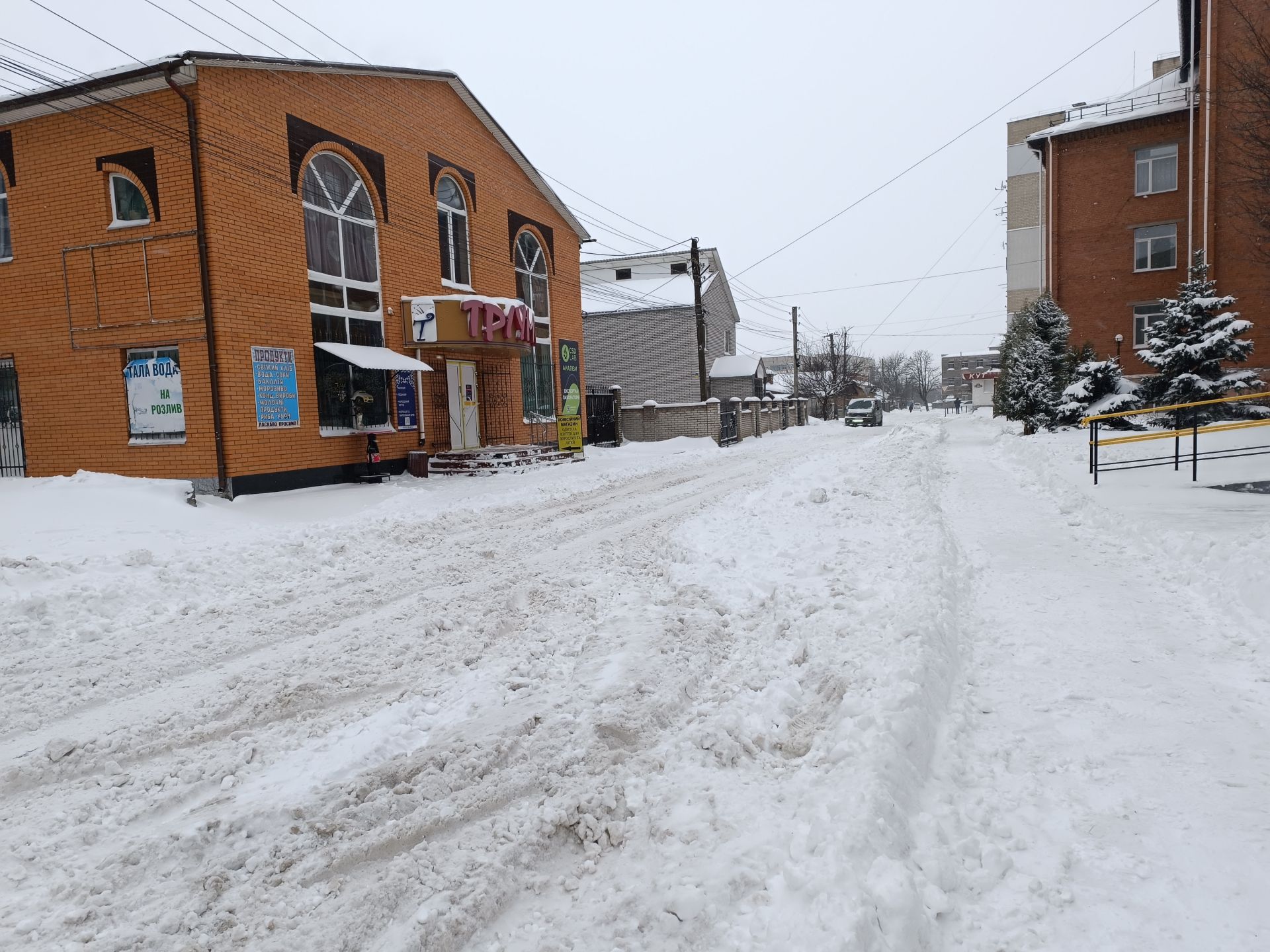 Комунальні служби працюють у посиленому режимі. Вулицю Героїв Майдану у центральній частині міста розчистили добре — подекуди навіть видніється асфальт. Техніка попрацювала і на тротуарах — розчистили широку смугу. Перед сквером біля пам’ятника Грушевському нагорнули цілу гору снігу.