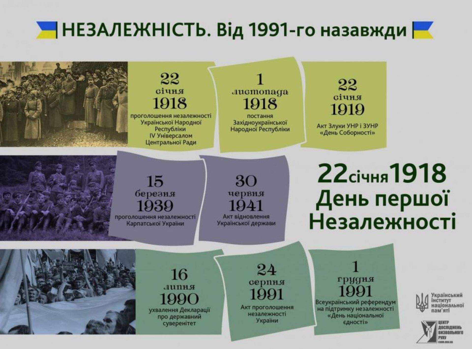Однією з найважливіших історичних дат є саме 22 січня (проголошення Першої Незалежності у 1918 році та проголошення Акта злуки УНР і ЗУНР) — День Соборності.