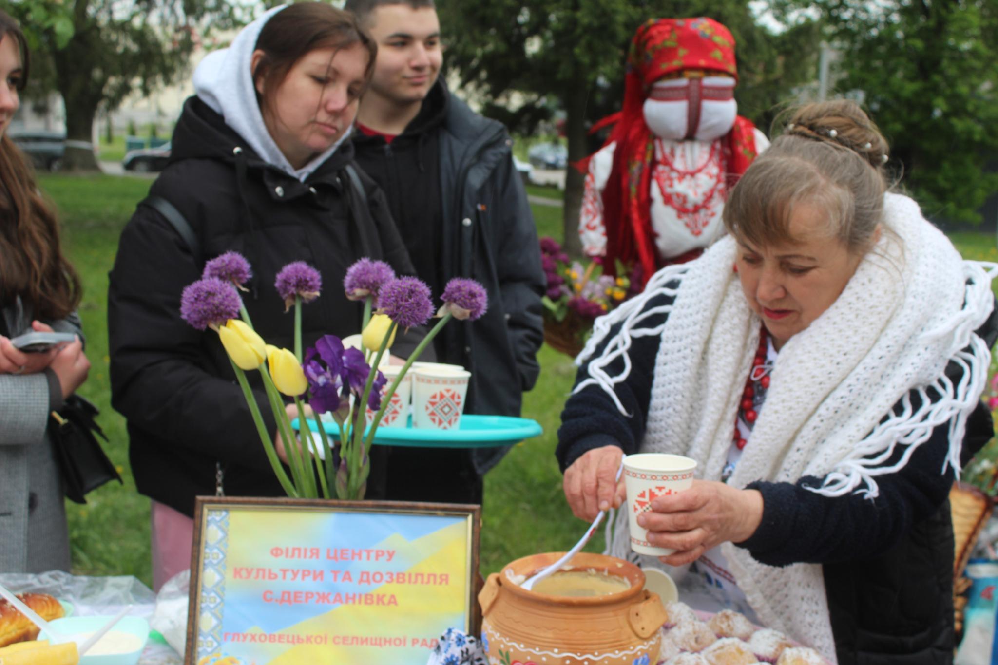 — Моя бабуся готувала цей кисломолочний продукт в печі і мене навчила готувати, а історія цієї страви дуже давня. Колотуха дуже цінний продукт тим, що натуральний, дуже калорійний, гарно втамовує спрагу. Тому наші предки брали колотуху з собою в поля, коли важко працювали під палючим сонцем. Її вживали з різною випічкою, пиріжками та хлібом, — розповіла ведуча і запросила на сцену кухарок Глуховецької громади та гостей з сусідньої Калинівки та Марковець: