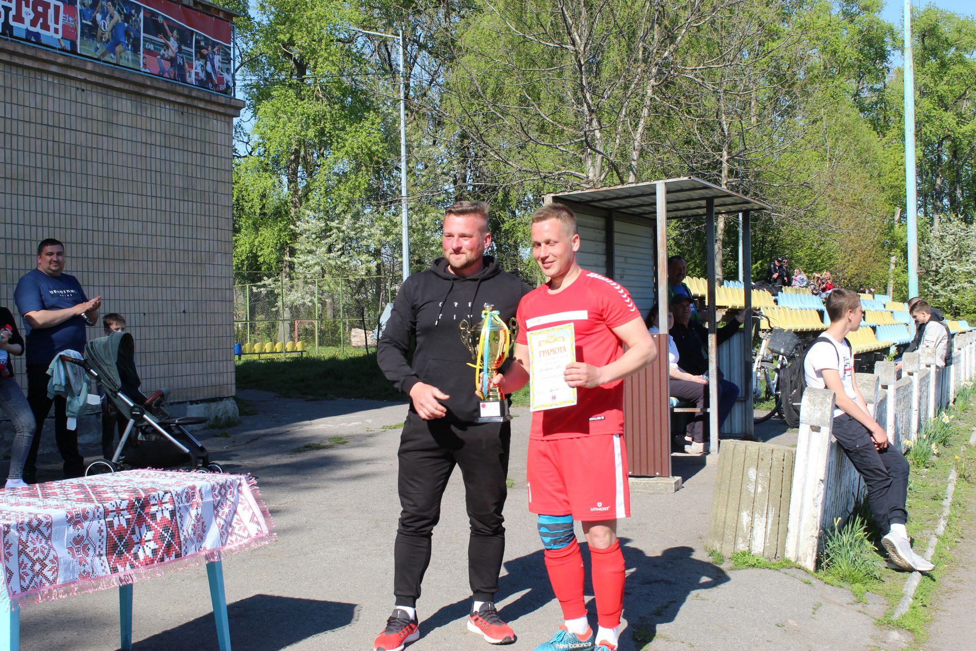На завершення змагань слово взяв організатор турніру Володимир Добржанський. Він подякував всім футболістам, які взяли участь у першому турнірі пам’яті перемоги над нацизмом. Адже такий турнір Володимир планує зробити традиційним. А в кінці промови запросив усіх присутніх на юшку на природі