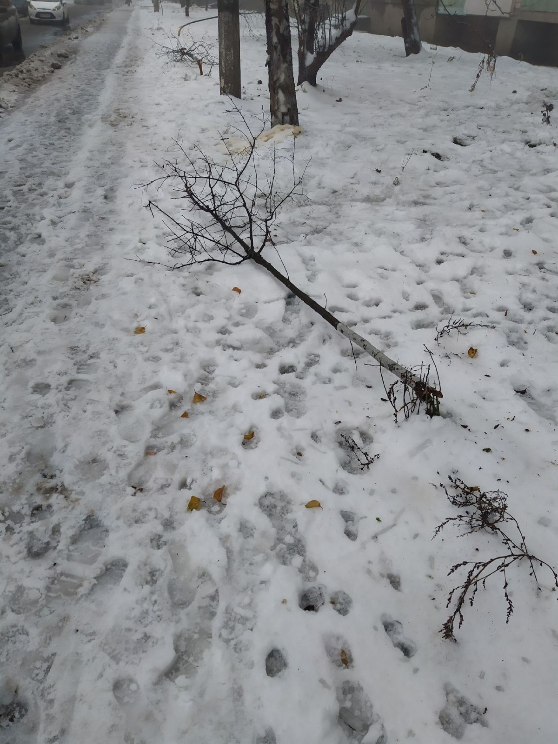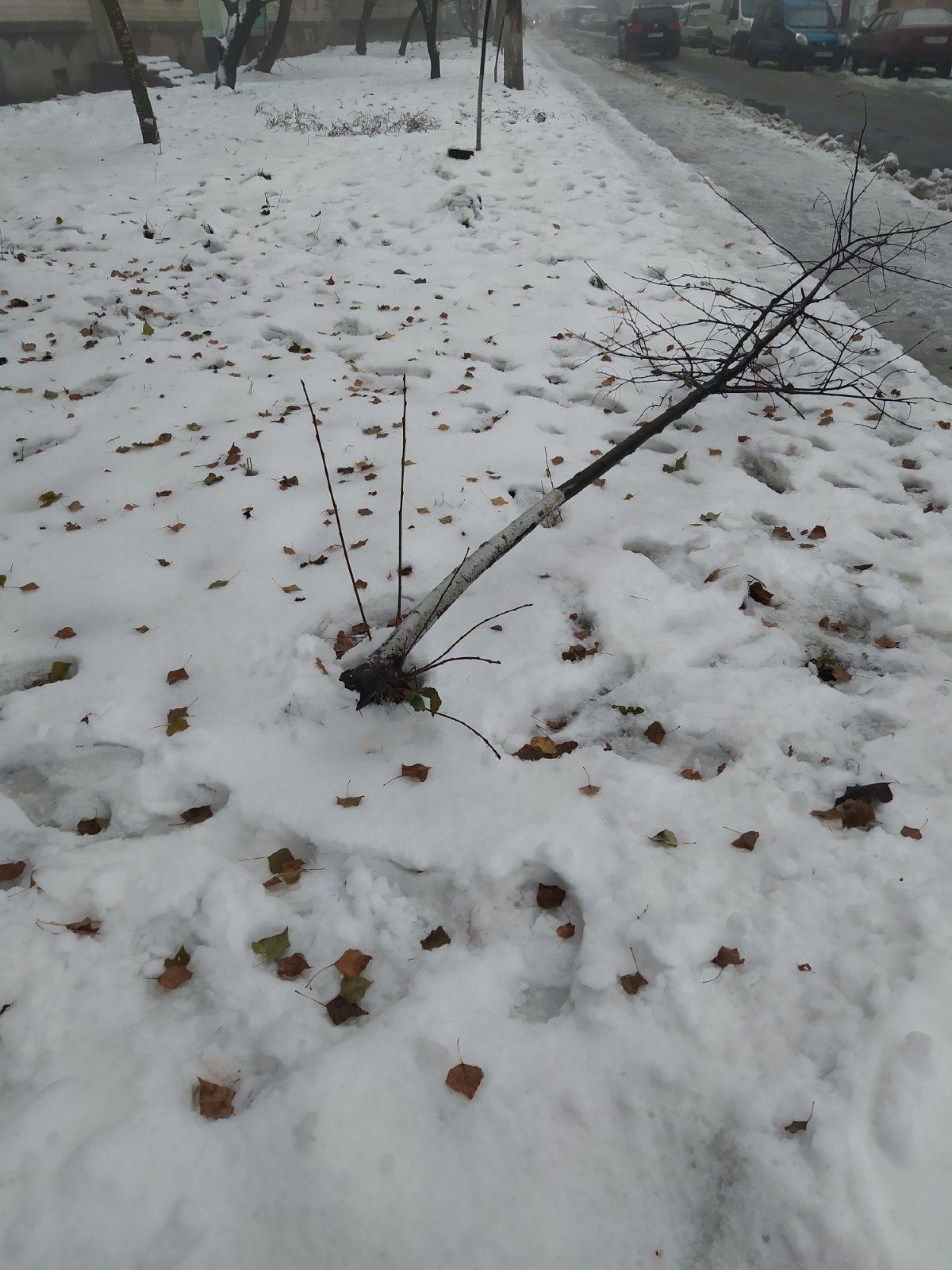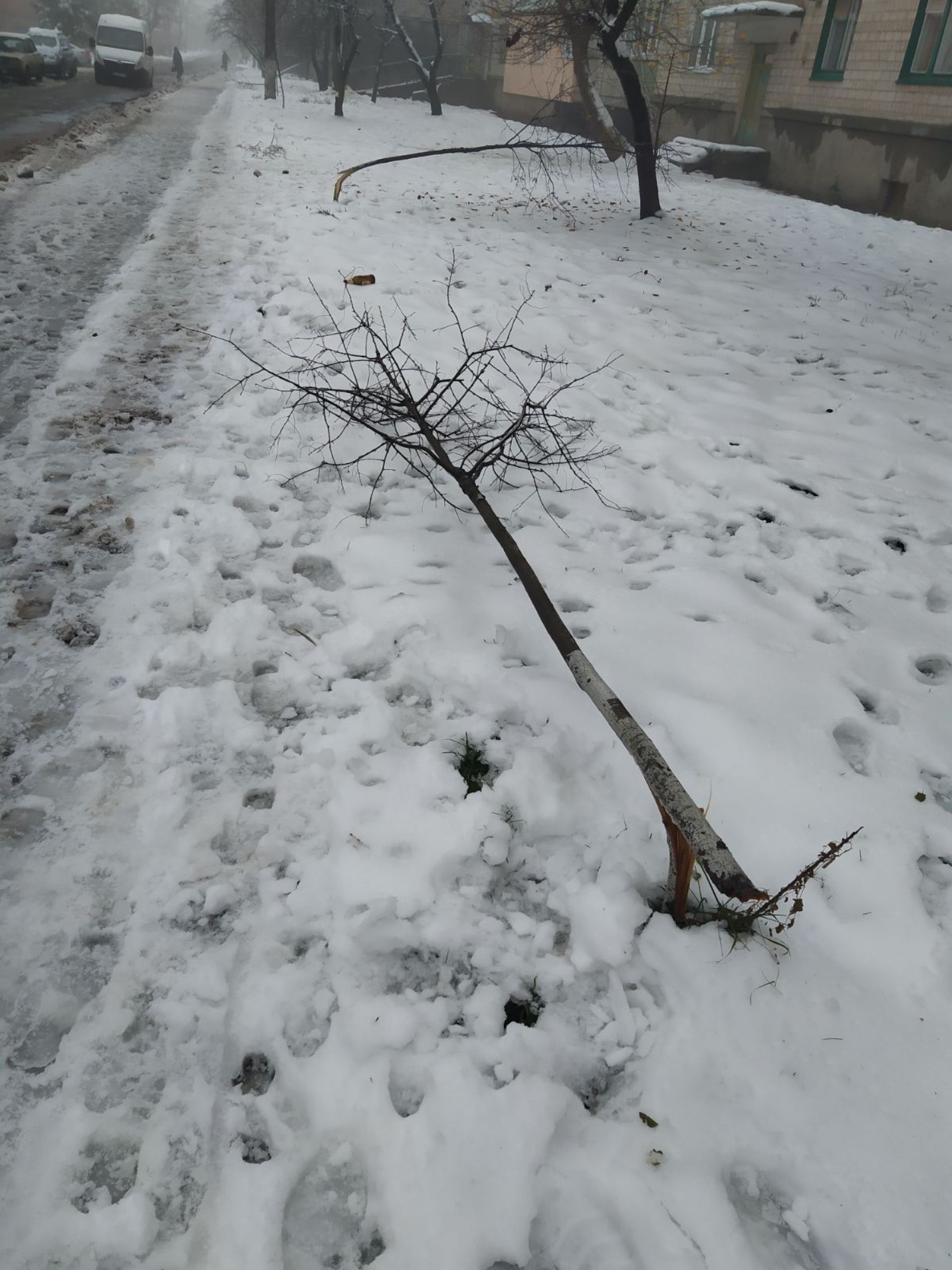 — Дерева поламані і це факт. Ми вже дивилися, розглядали це питання, — прокоментував газеті голова ОСББ «Грушевського, 23» Олександр Курніков. — Побачивши, відразу звернулися до управління житлово-комунального господарства, тому що ці дерева на їхньому балансі знаходяться. Мені сказали, що вони викликали поліцію. Її висновок — зламалися від снігу. Але видно, що їх ломали, їх гнули всі, але зломалися чотири.