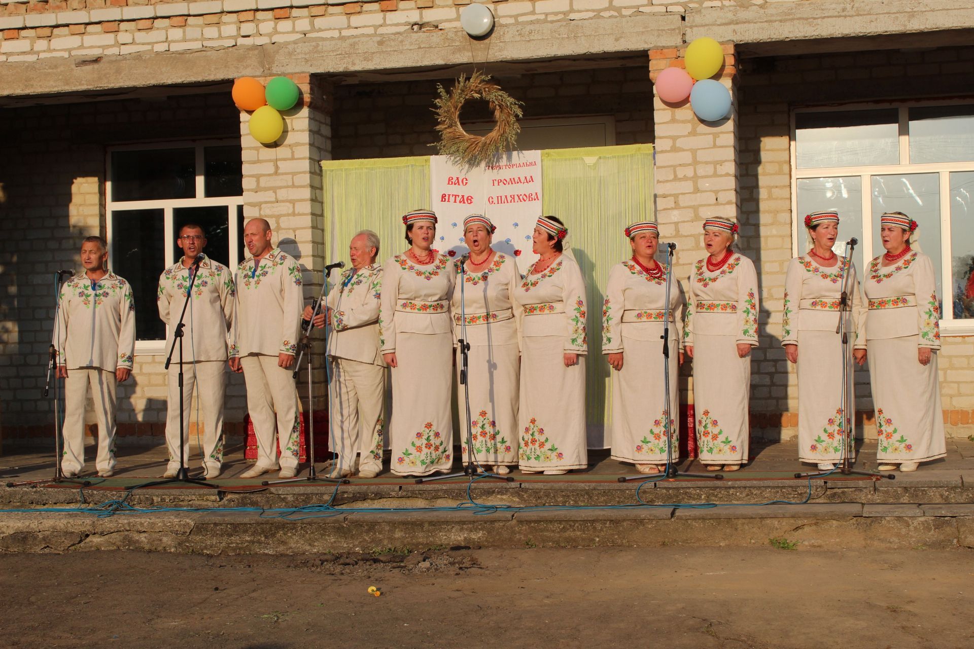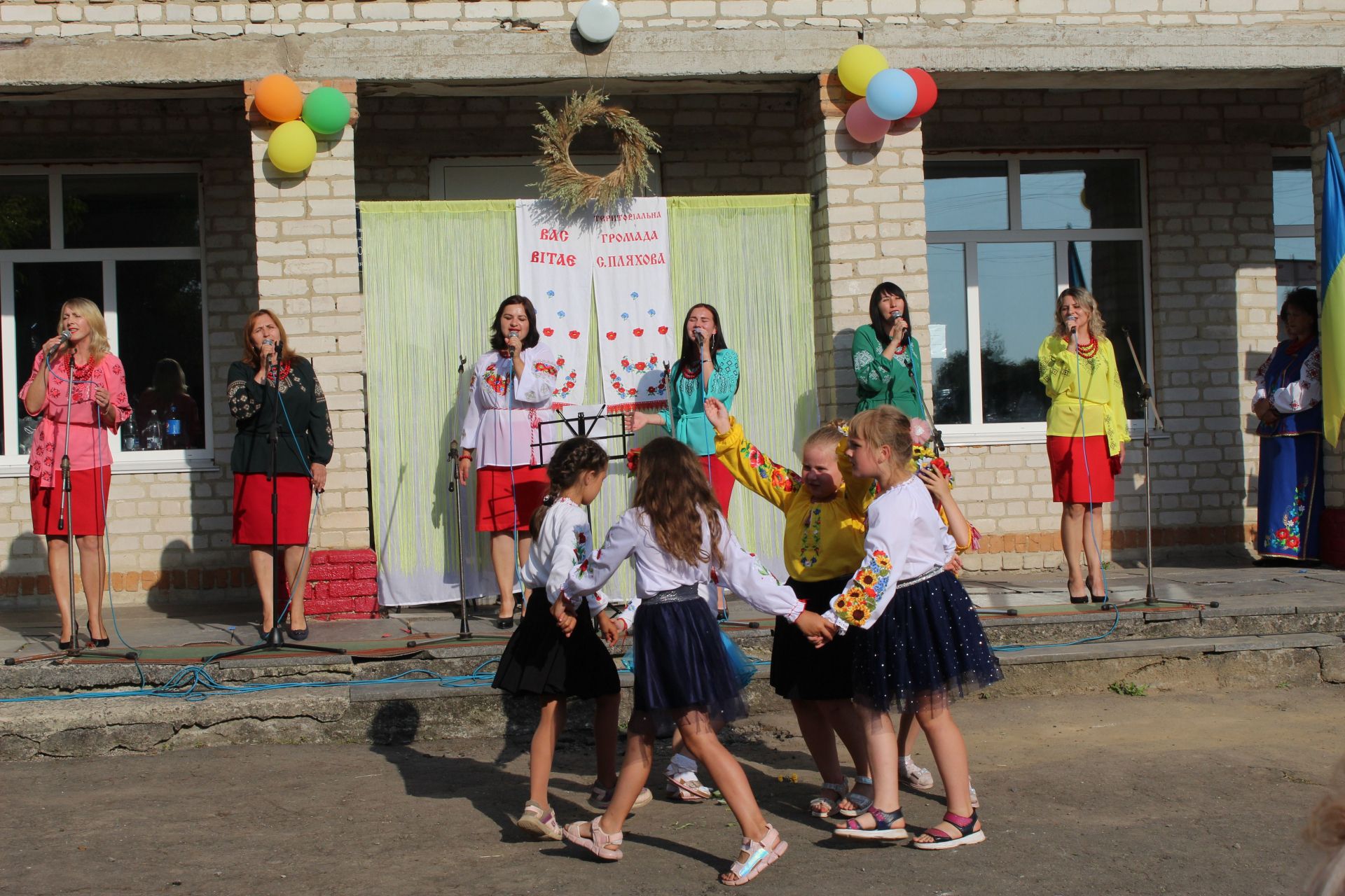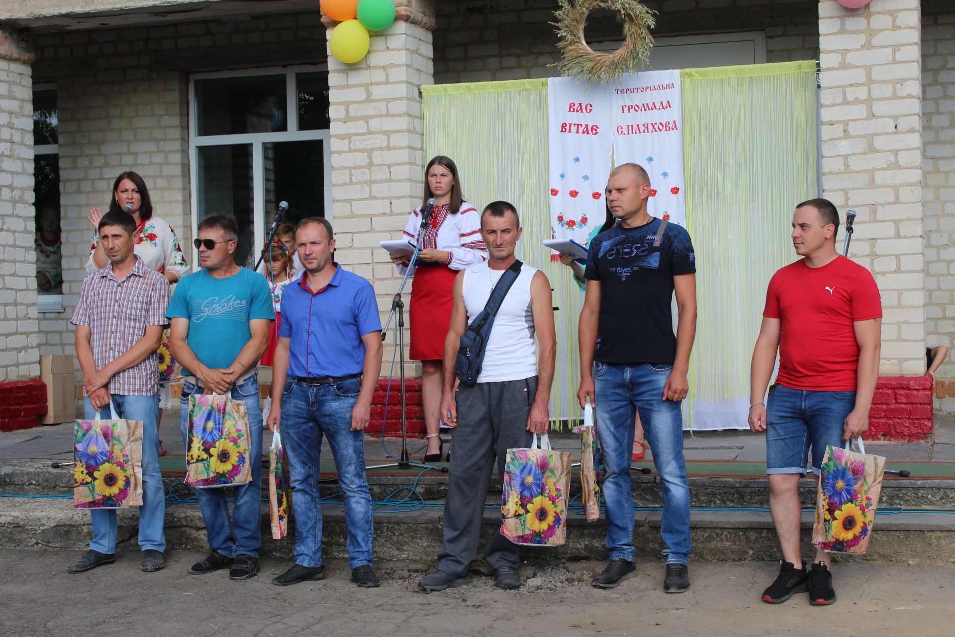 За українською традицією запрошених вітають хлібом. Не стало винятком і наше свято. Дівчатка в національних костюмах під мелодію пісні-танцю «Діти України» стали роздавати хліборобам запашний коровай з пшениці пляхівських ланів та випечений майстрами здоби цієї ж громади.