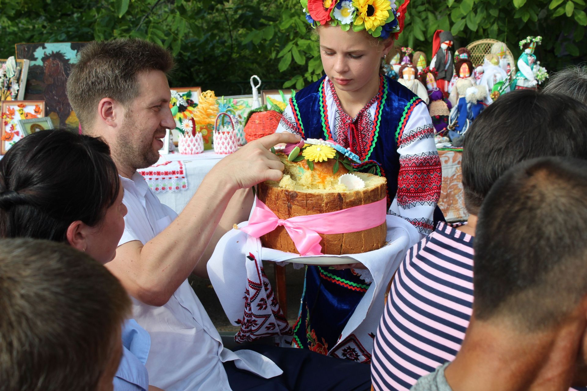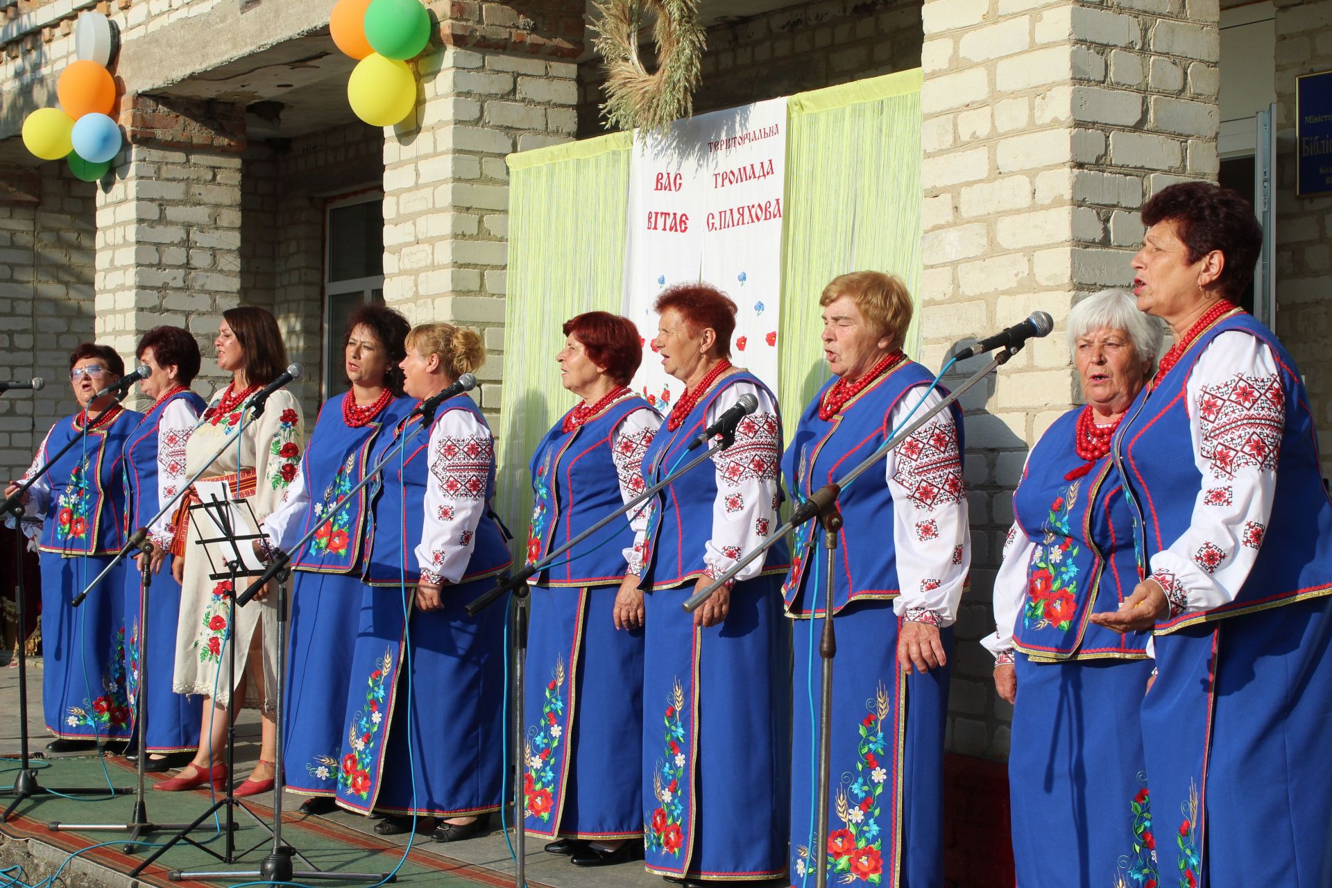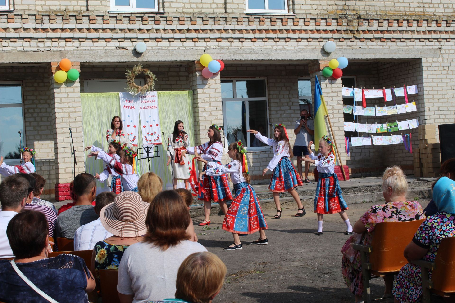 За українською традицією запрошених вітають хлібом. Не стало винятком і наше свято. Дівчатка в національних костюмах під мелодію пісні-танцю «Діти України» стали роздавати хліборобам запашний коровай з пшениці пляхівських ланів та випечений майстрами здоби цієї ж громади.