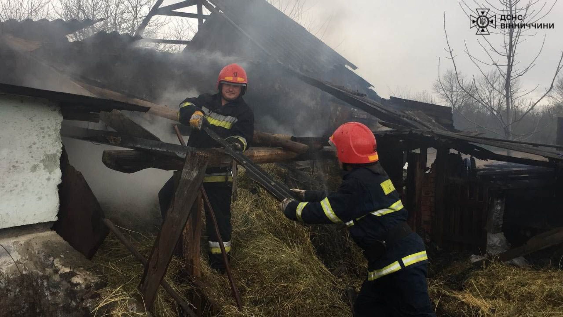 Полум’я знищило будівлю на площі 80 кв.м та господарчі речі. Така ж площа будівлі знищена внаслідок пожежі в с. Ворошилівка Вінницького району.