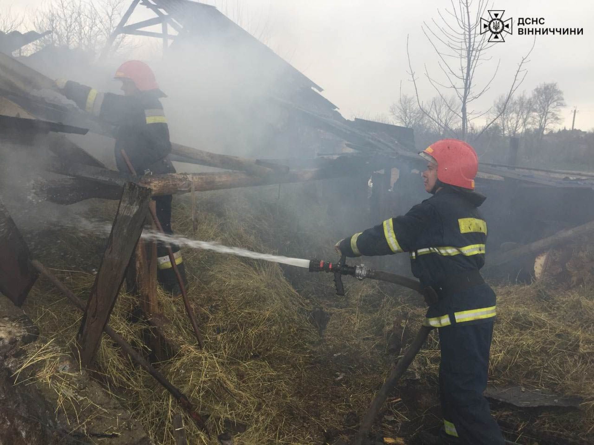 Того ж дня ліквідували пожежі в сіннику с. Строїнці Вінницького району та в господарчих будівлях с. Соколова Хмільницького району й с. Студена Тульчинського району.