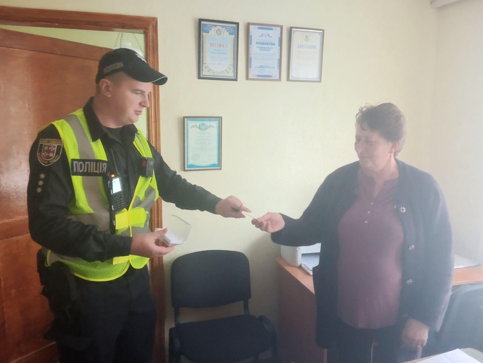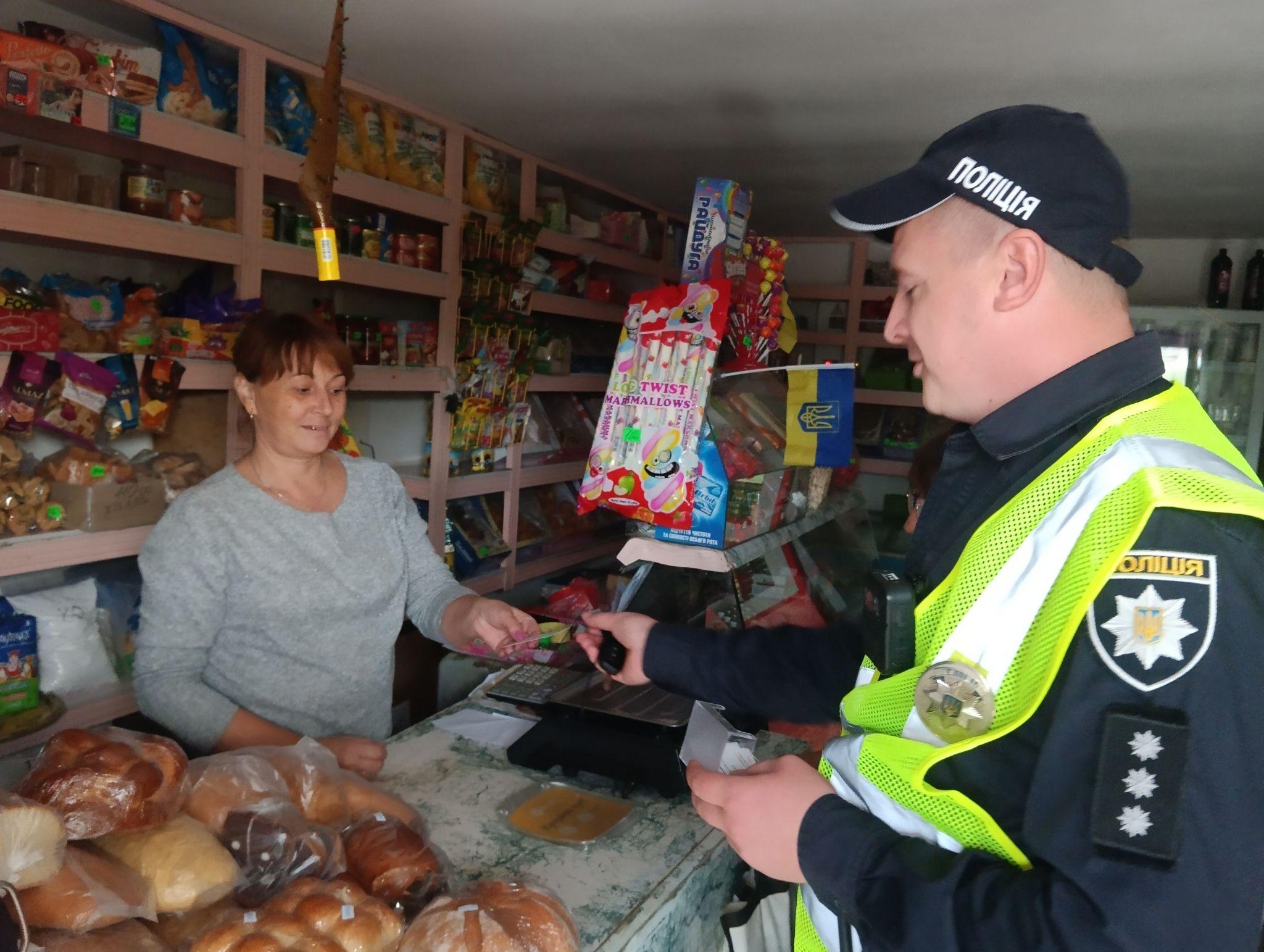 Поки говорили про робочі моменти, вже й приїхали у Сестринівку. Перша зупинка — один із місцевих магазинів. Тож В‘ячеслав, озброївшись пачкою візиток, вирушив туди на знайомство. Побачивши поліцейського, спочатку продавчиня трохи чи то розгубилась, чи то злякалась. Але згодом, почувши в спокійному та врівноваженому тоні пояснення, заспокоїлась і навіть почала усміхатися.