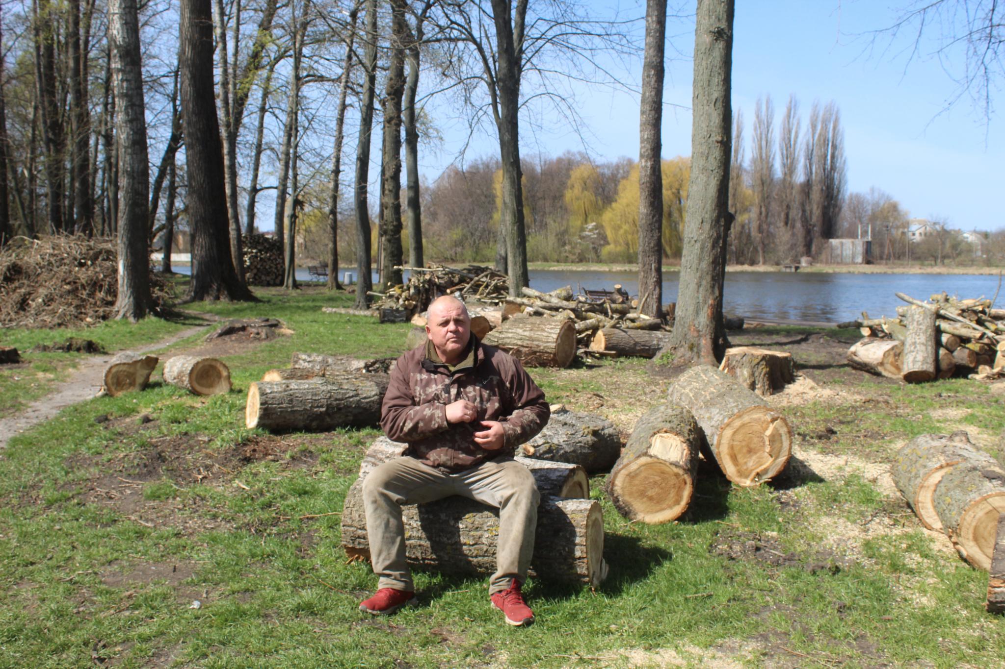 Директор стадіону Володимир Шурман — Всі попрацювали дуже добре і це все, що він сказав. Пила Штиль-250 потужна техніка, але чим більш потужна техніка тим вона більше забирає фізичних сил. Так ми й сфотографували Володимира з втомленим виглядом сидячи, на колоді.