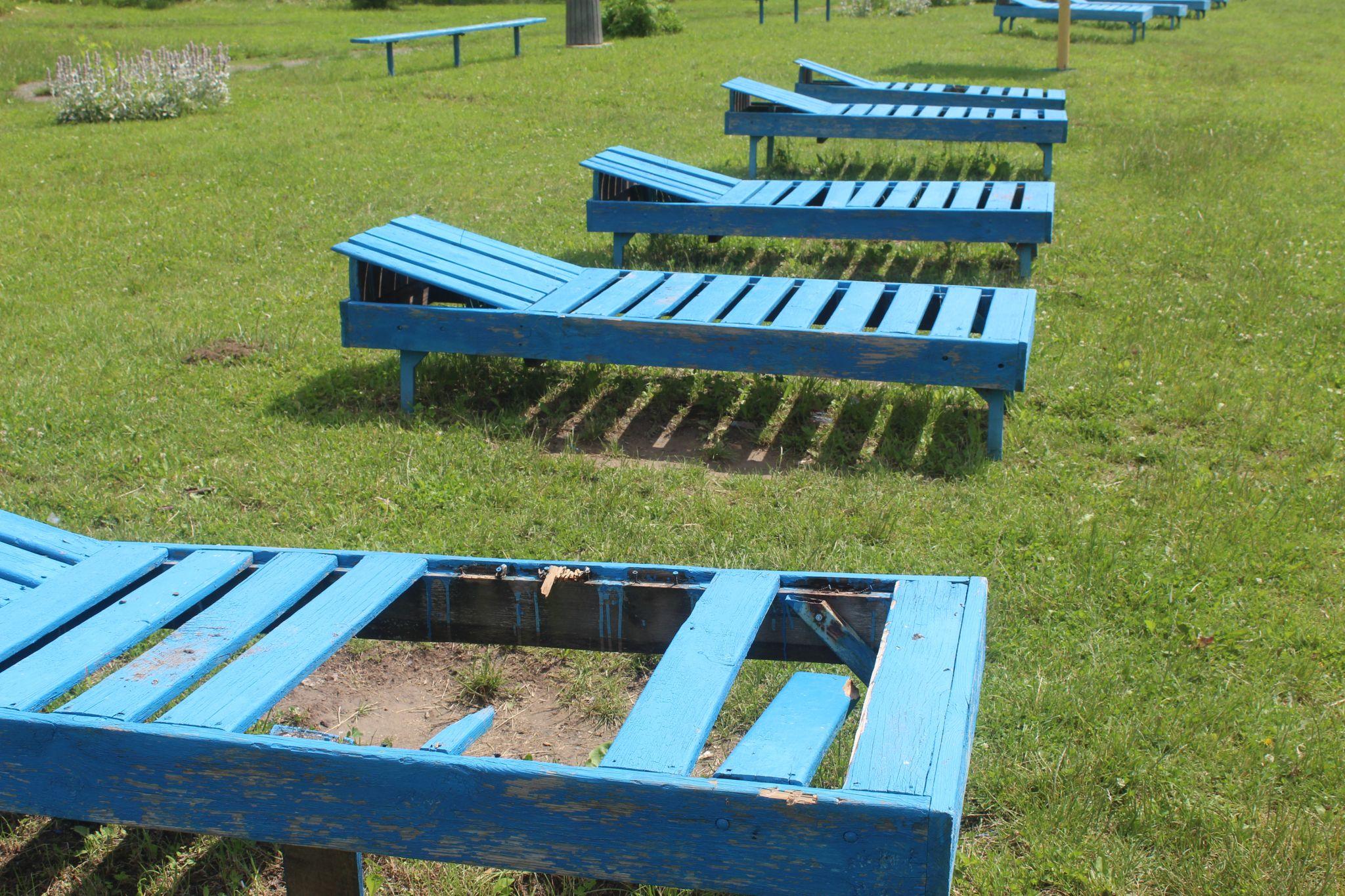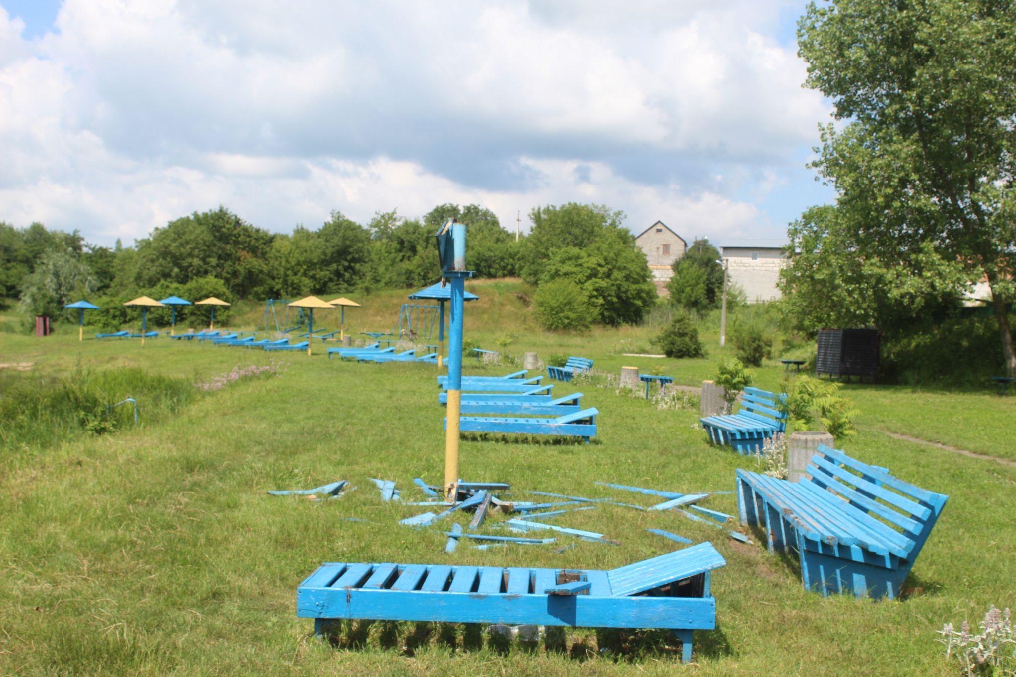 - Вчора, 16 червня, приблизно між 17–18 годинами на ставку, що нарекли «Штанами», хтось потрощив лежаки на пляжі