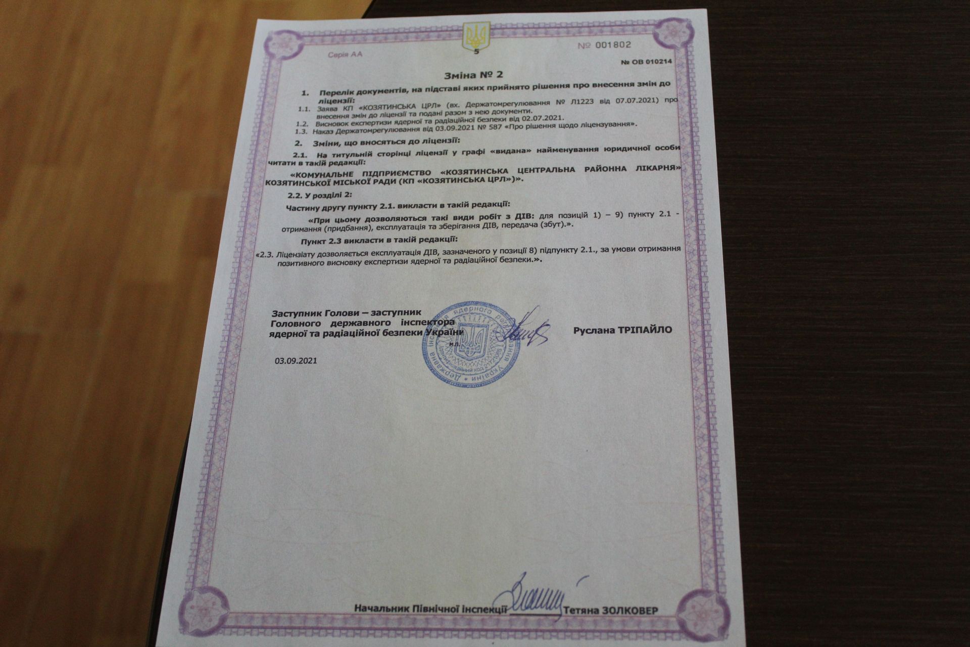 — Так, дійсно, відбулось відкриття, але відкриття чого — першої черги реконструкції відділення екстреної (невідкладної) допомоги, до якої і входить діагностичний блок, в один час, а дозвіл (ліцензію на право використання джерел іонізуючого опромінення) отримано дещо пізніше. На жаль, процедура отримання дозволу має пройти тривалий процес експертизи із залученням фахівців різного напрямку роботи (держпродслужби, екології, радіаційного захисту, дотримання будівельних норм), А це є затягування в часі незалежно від моїх, чи чиїхось власних забаганок. Є процедура отримання ліцензії від державної інспекції ядерного регулювання. Подібні проблеми виникли не лише у нас, а у інших лікувальних закладах.