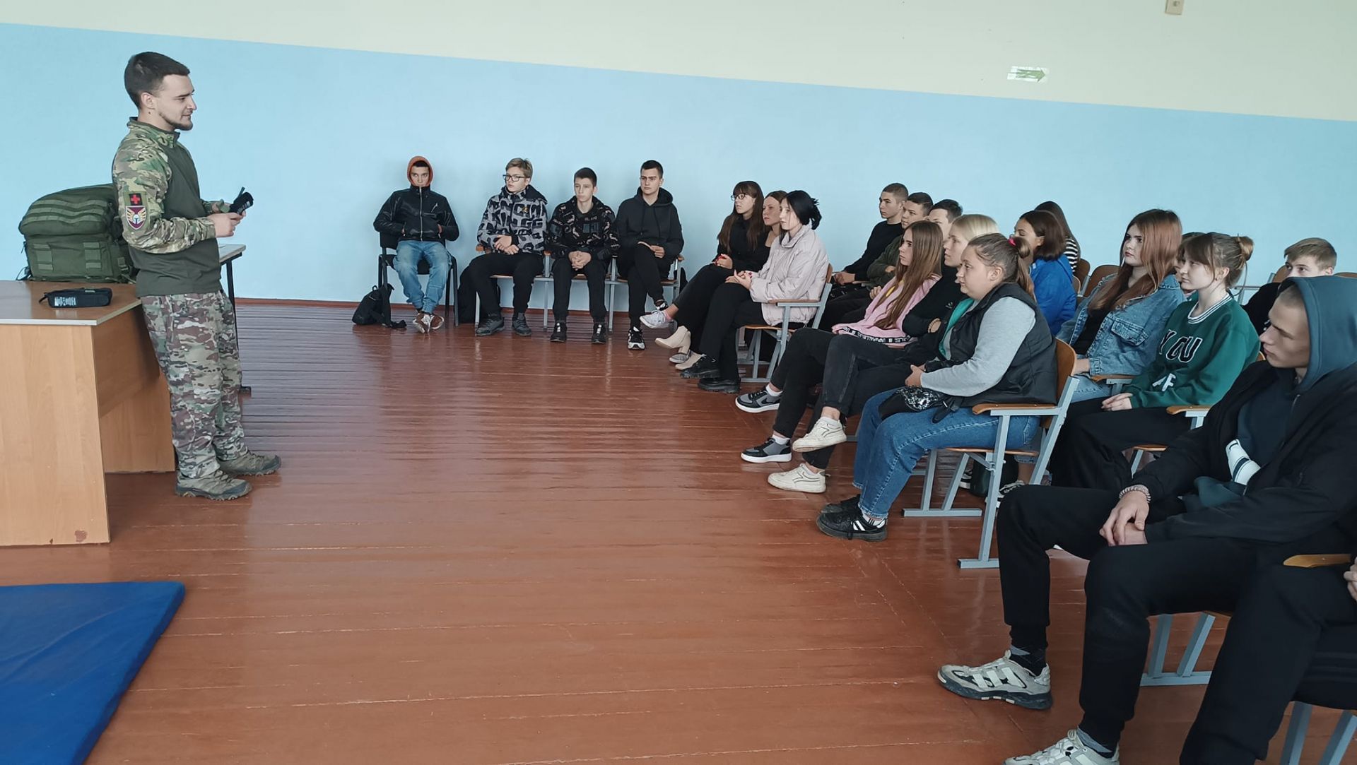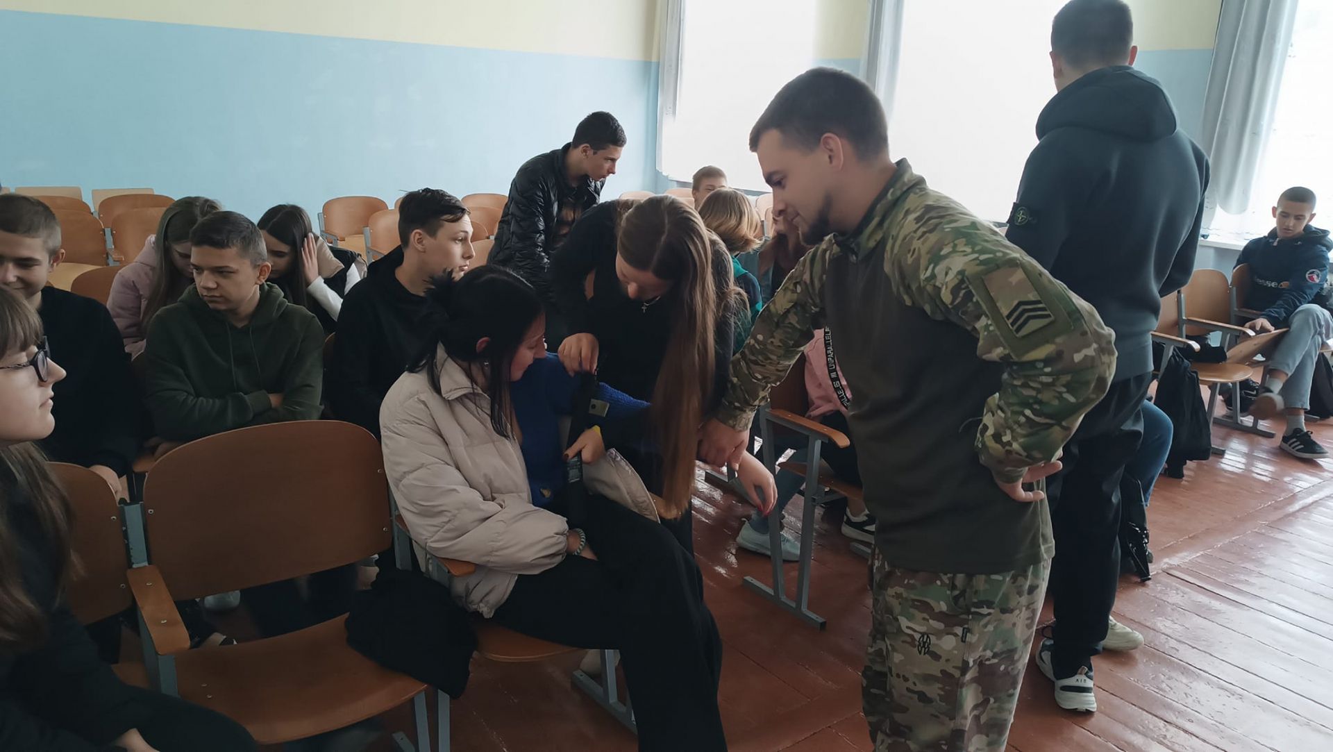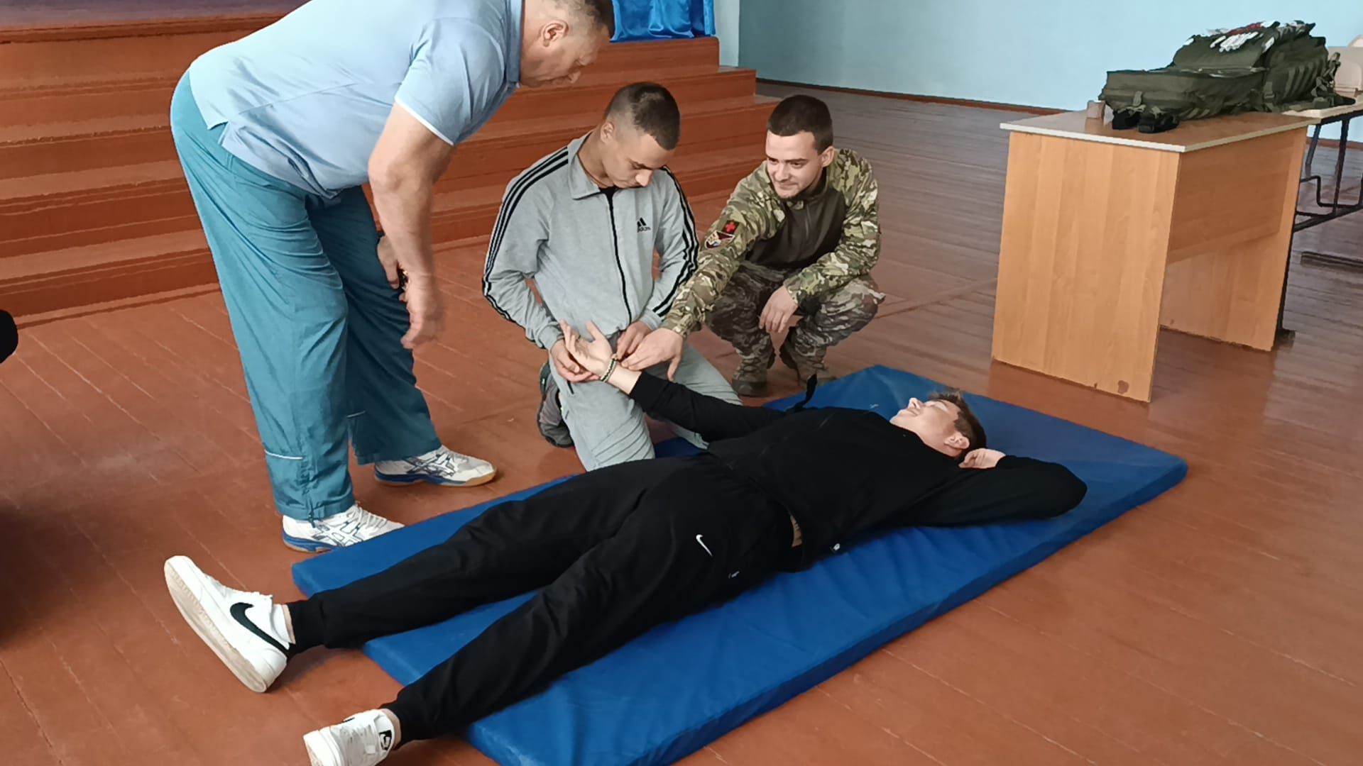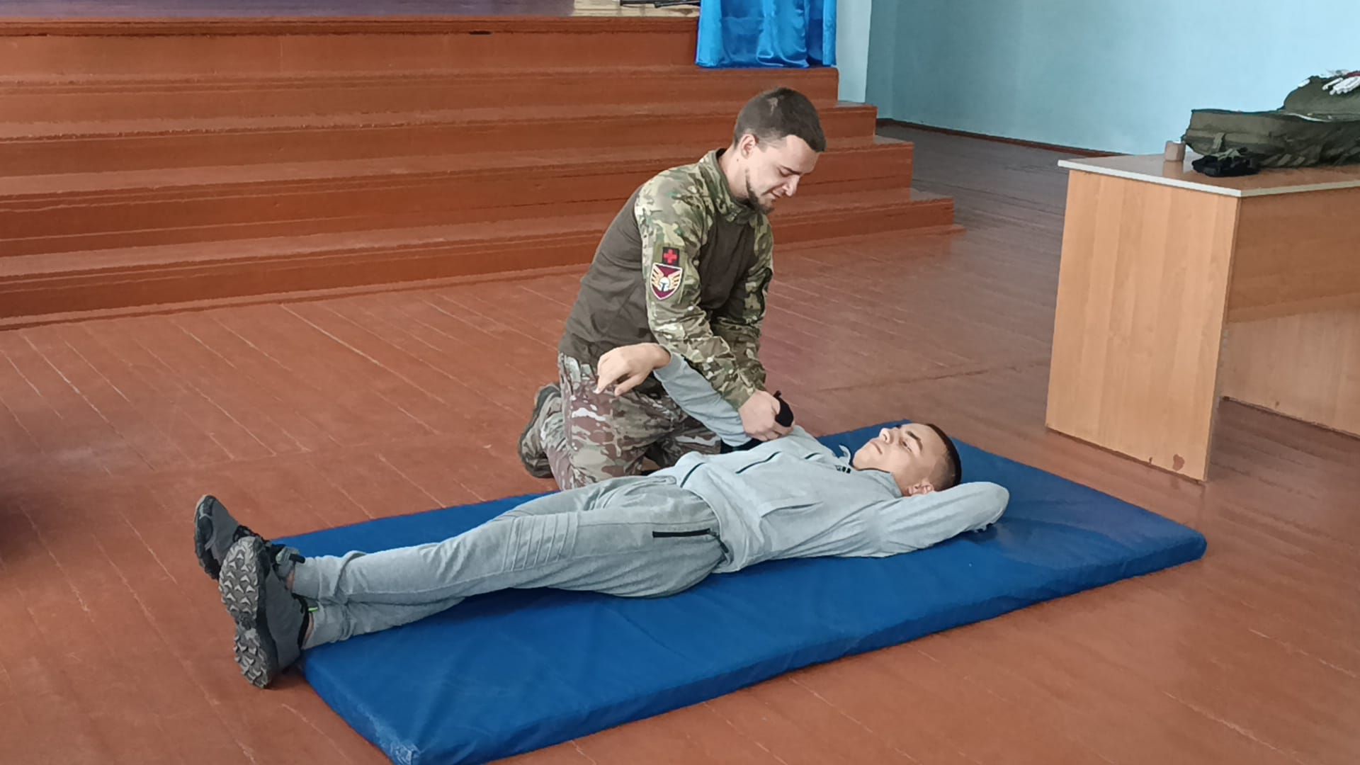 - Заняття проводив колишній учень ліцею, інструктор з тактичної медицини Олександр Гунько.