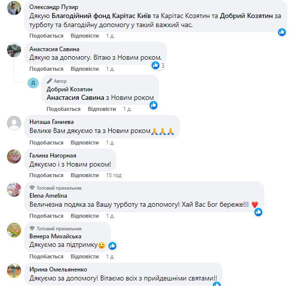 — Щиро дякуємо Благодійний фонд Карітас Київ та Олександр Пузир за підтримку та допомогу! Щиро дякуємо всім, хто допомагав і допомагає