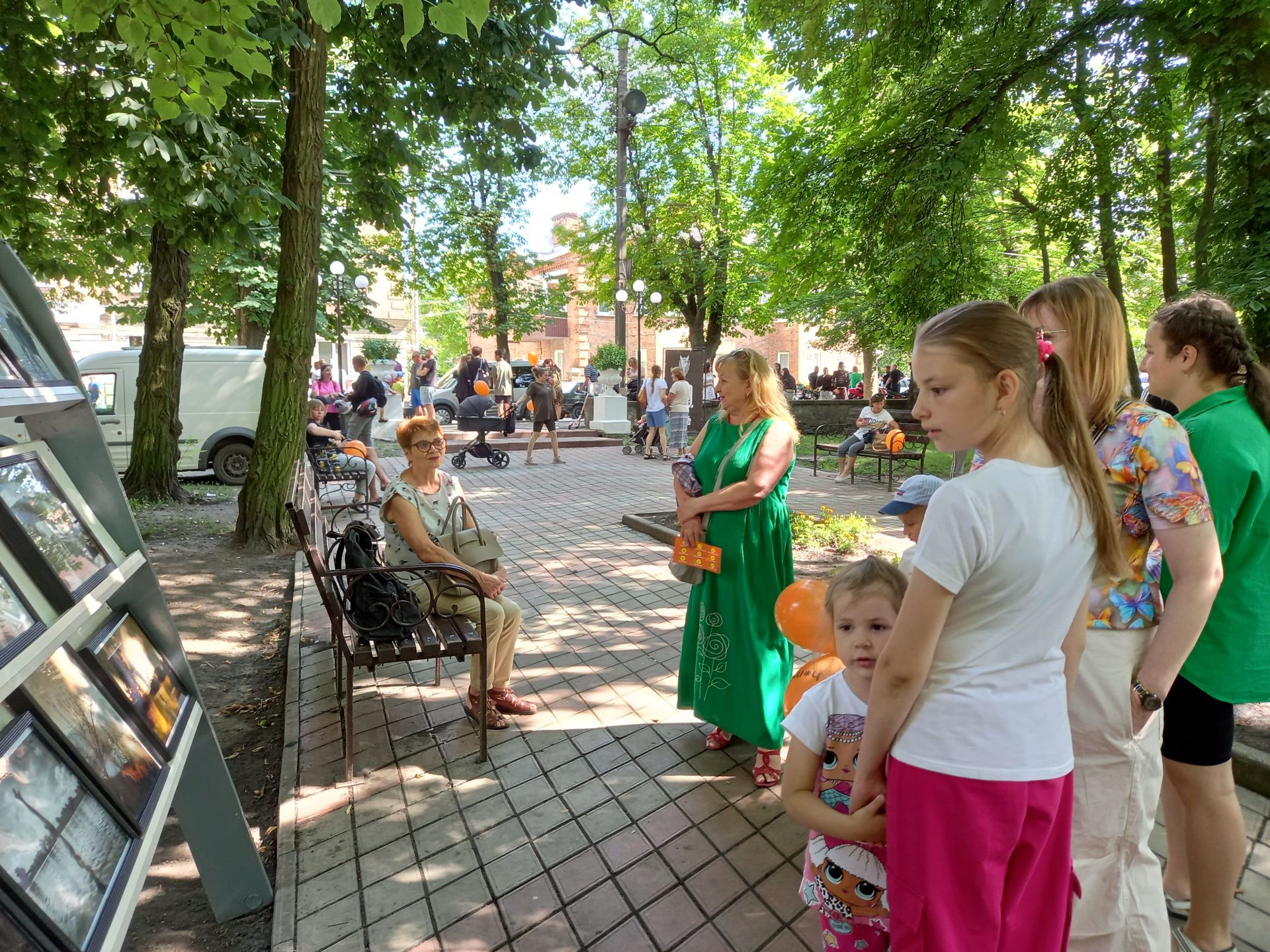 По інший бік алеї оформили міні-виставку «Дім. Земля. Рідний край». Це світлини, які зняв козятинський фотограф Антон Черняк. Директорка музею історії міста Лілія Макаревич знайомить з його роботами усіх, хто підходить подивитися фото.