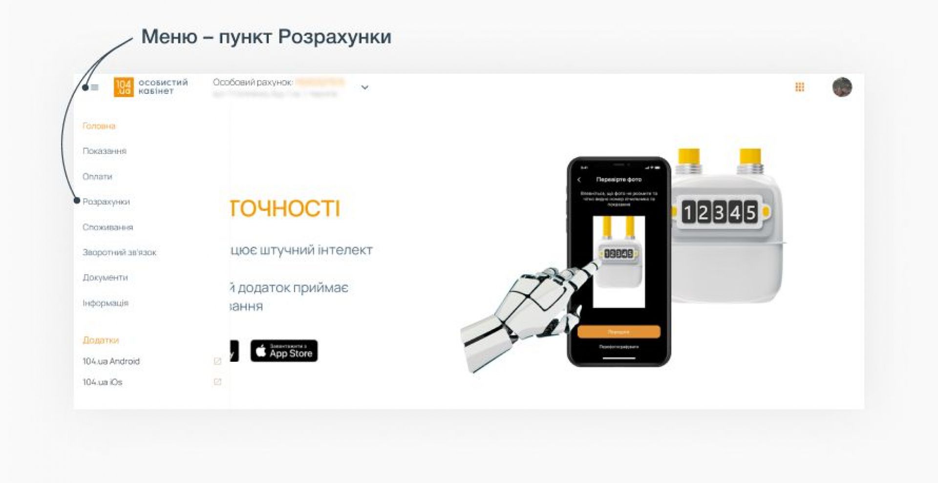 - Зайдіть в особистий кабінет на сайті https://104.ua/ua/ та натисніть три лінії у лівому верхньому куті екрана.