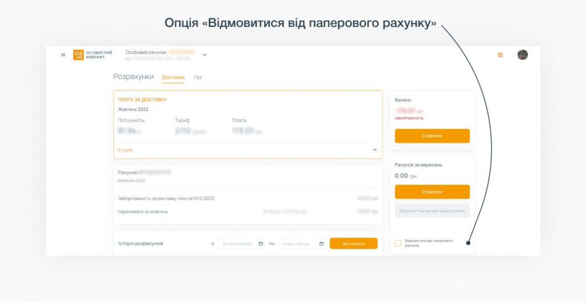 - У розділі «Рахунок» поставте «галочку» навпроти опції «Відмовитися від паперового рахунка».