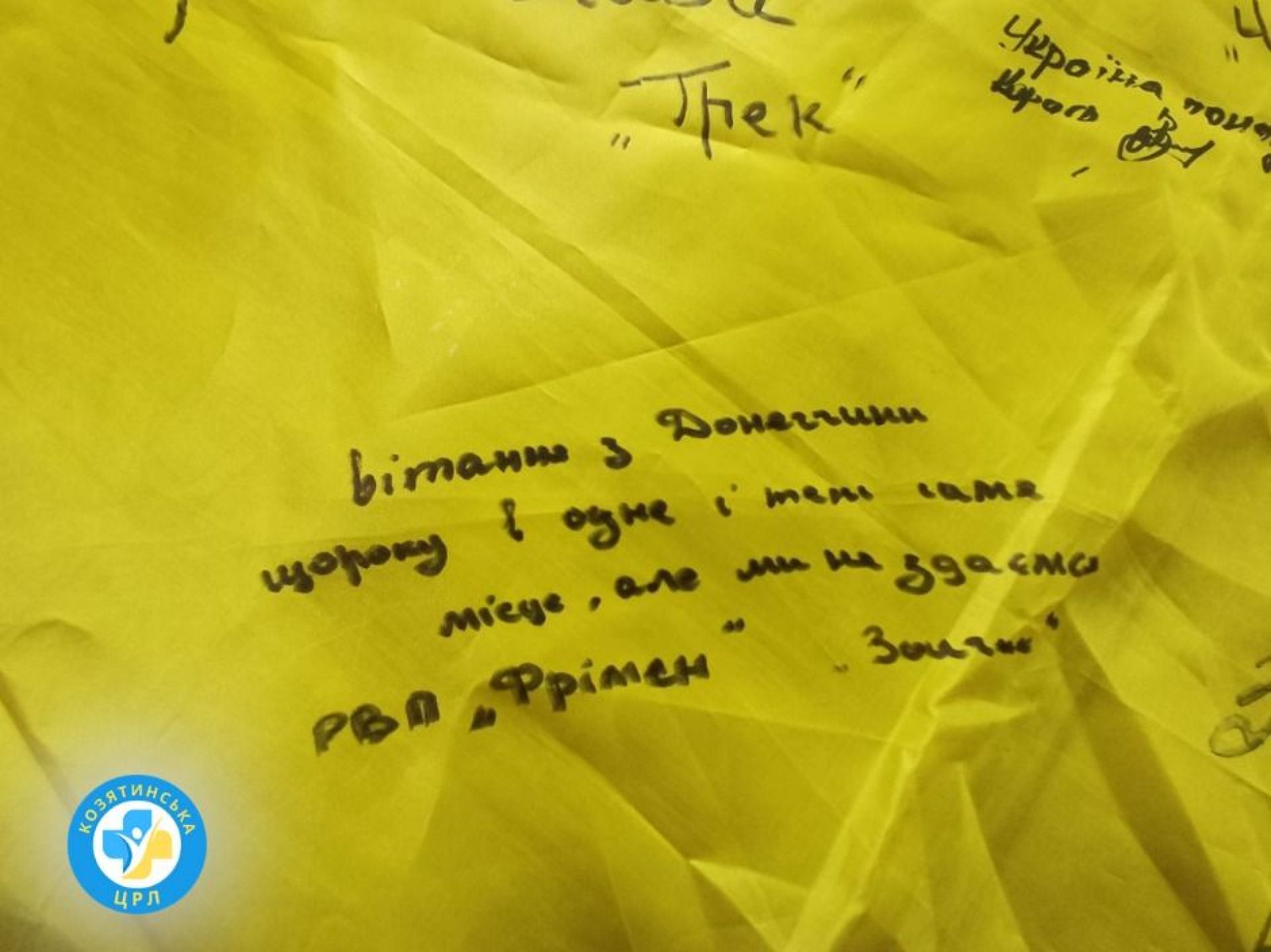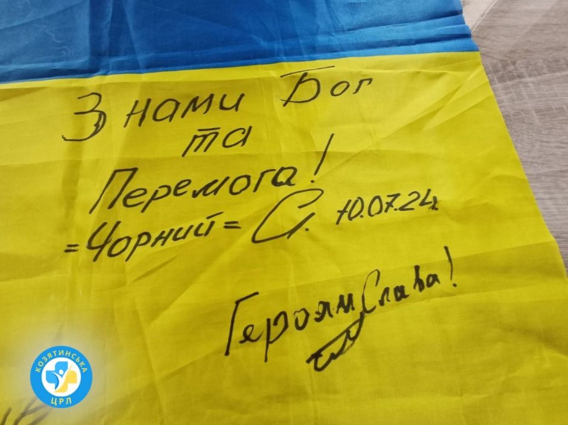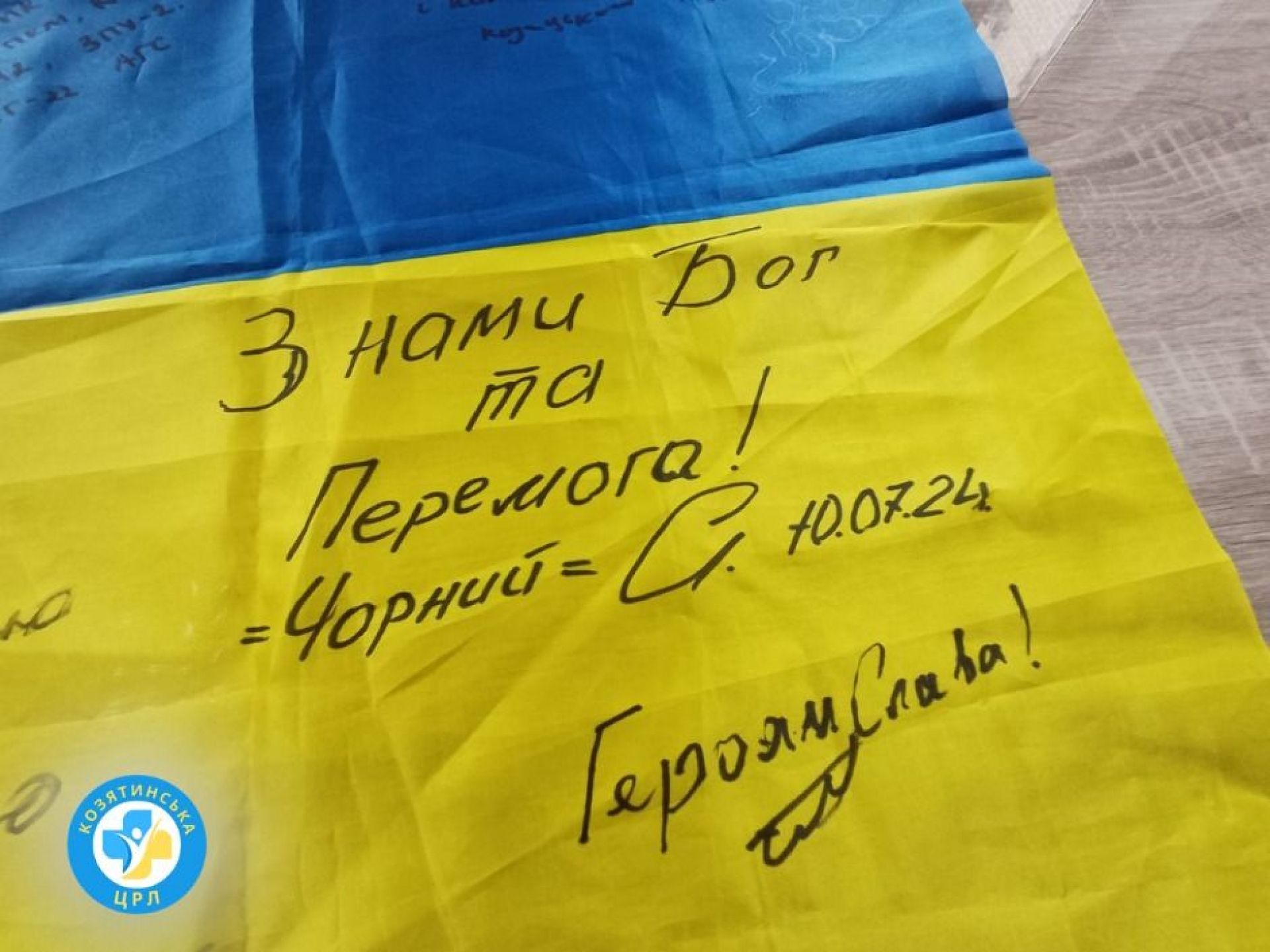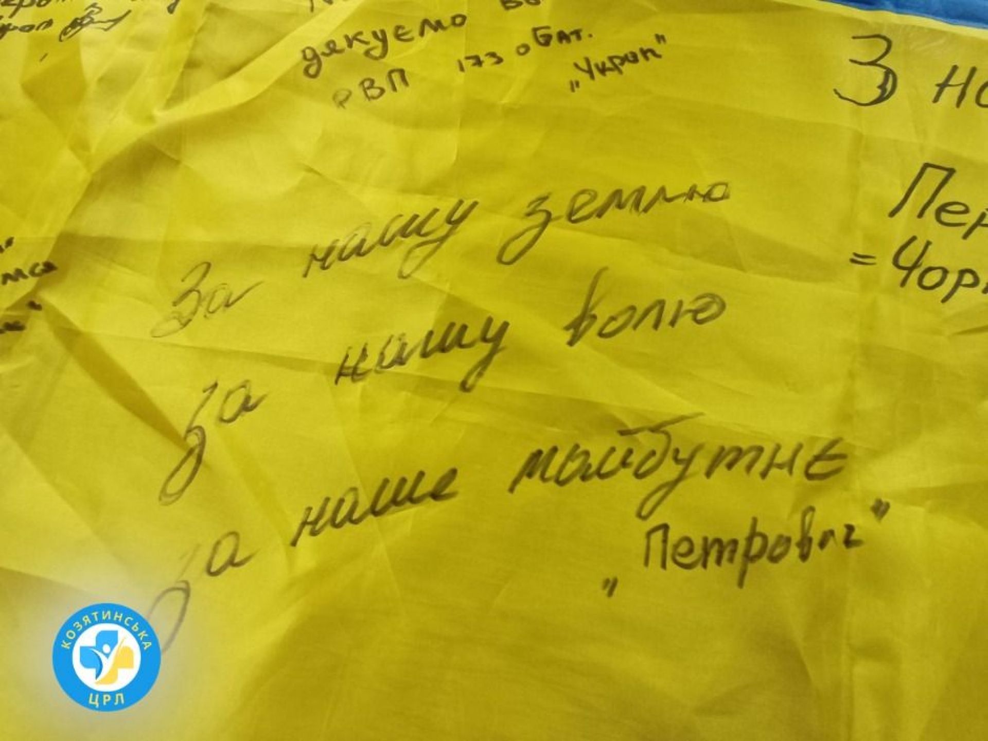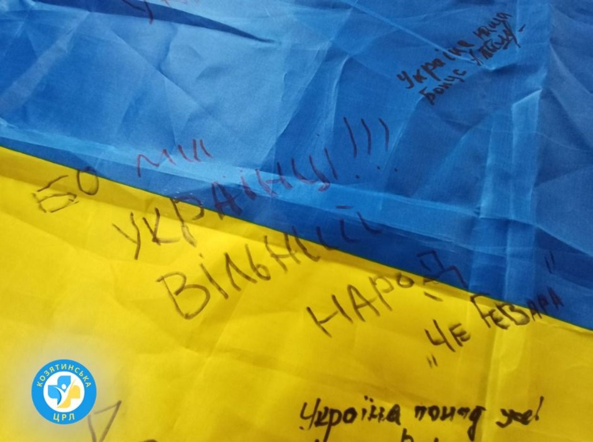 - Цінний подарунок з фронту — синьо-жовте знамено з підписами та побажаннями — отримали працівники лікарні від бійців 173 батальйону 120 окремої бригади ТрО Збройних Сил України в знак подяки за дієву допомогу.