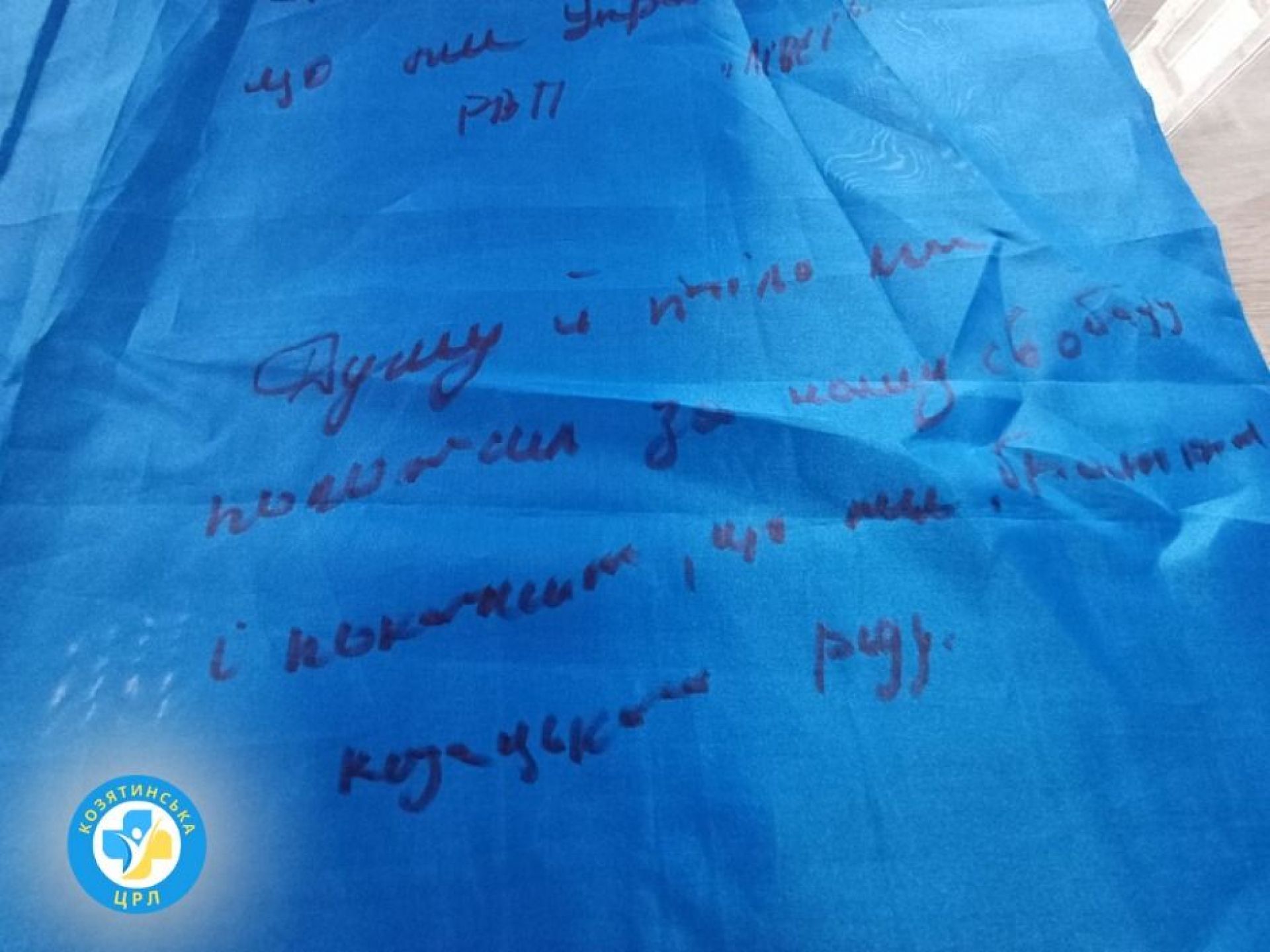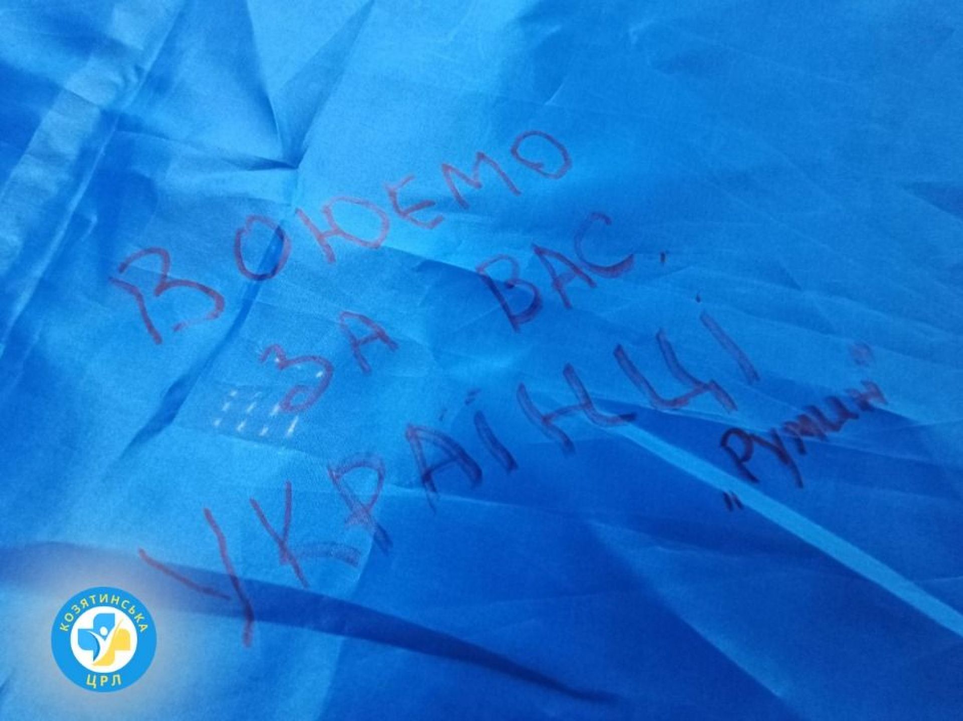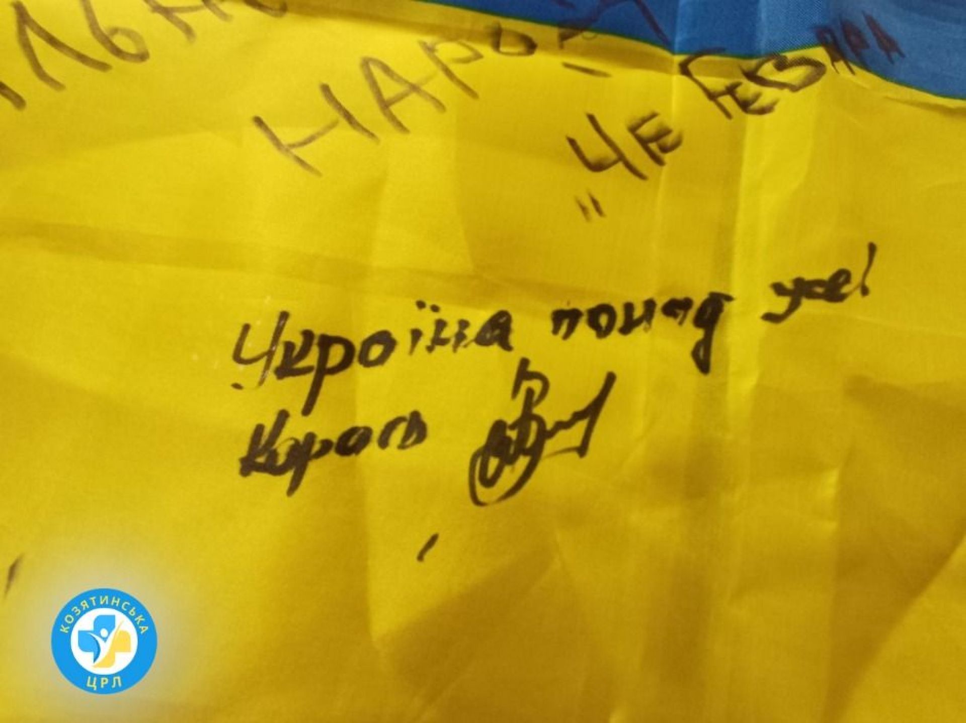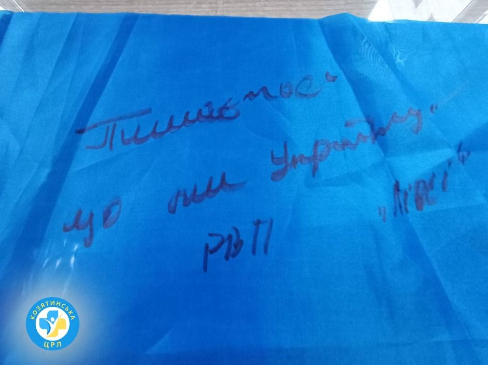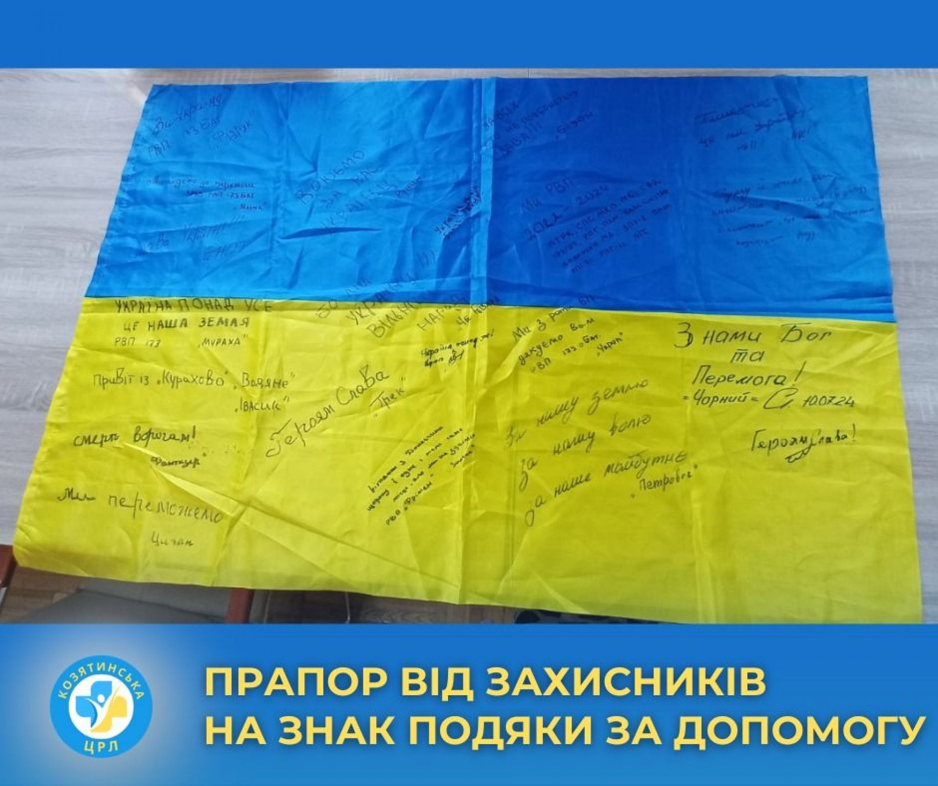 - Цінний подарунок з фронту — синьо-жовте знамено з підписами та побажаннями — отримали працівники лікарні від бійців 173 батальйону 120 окремої бригади ТрО Збройних Сил України в знак подяки за дієву допомогу.