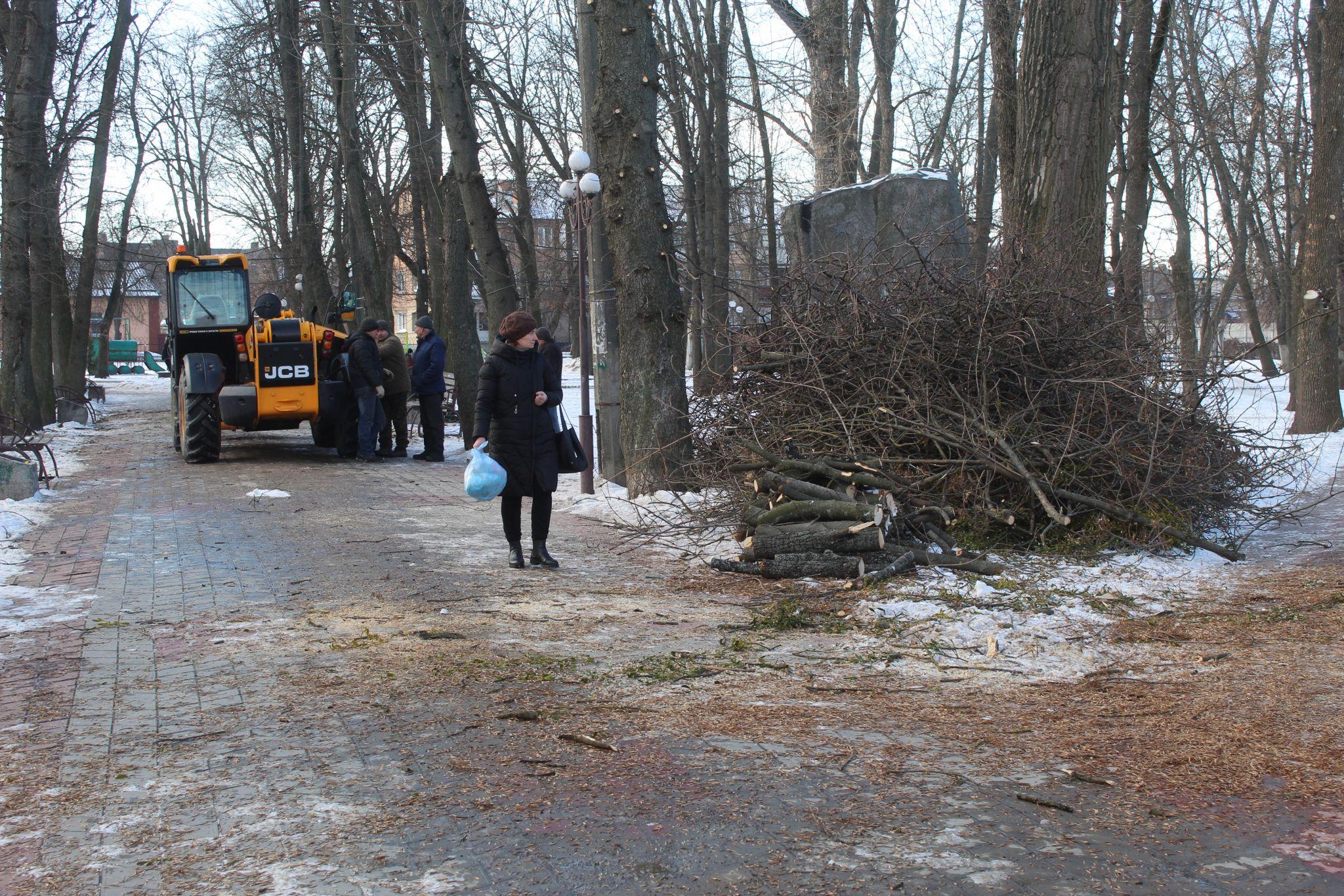 Після нетривалого затишшя, у п’ятницю, 10 лютого, в міському парку знов з’явилися комунальники з технікою та пилкою. Керував процесом обрізки дерев у парку директор комунального підприємства «Чисте місто» Володимир Добржанський.