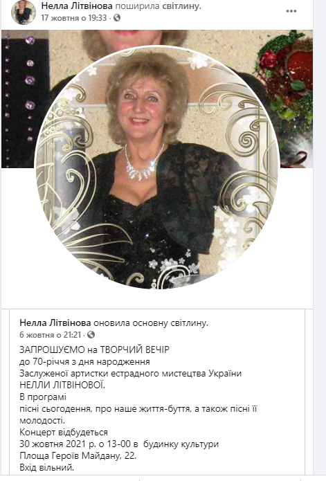 У Козятині відбудеться творчий вечір до 70-річчя з дня народження заслуженої артистки естрадного мистецтва України, козятинчанки Нелли Літвінової