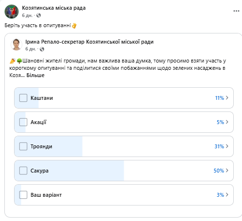 Козятинчани вибрали сакури та троянди: про озеленення громади