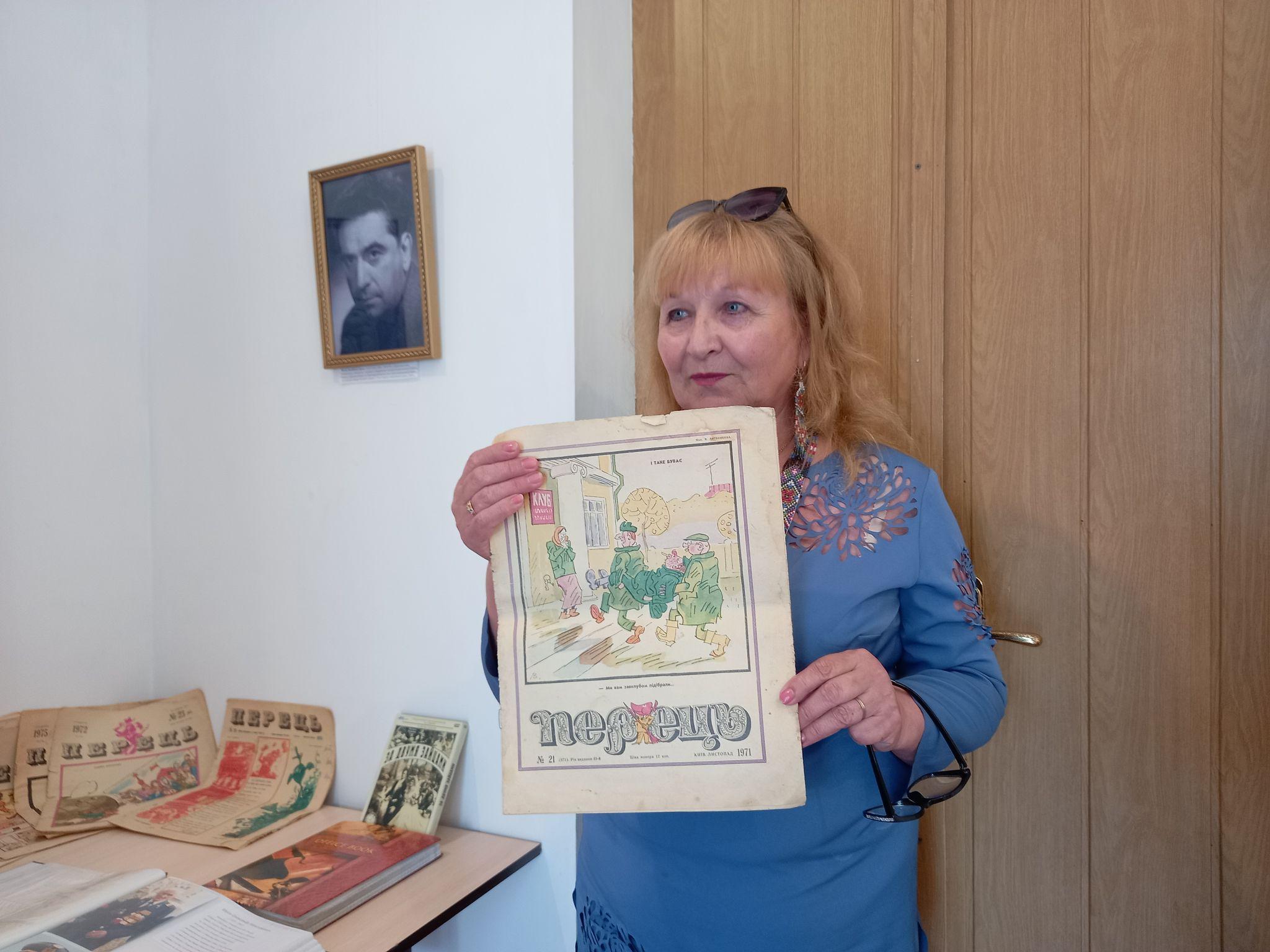 — Перед вами «Перець» 80-их років, — показує Лілія Макаревич журнал. — Федір Маківчук понад 40 років очолював його редакційну колегію. Він страшенно недолюблював номенклатурщиків, цей керівний склад і майже в кожному номері журналу були карикатури на цю тему. До речі, карикатури робив ще один козятинчанин Сергій Герасимчук.