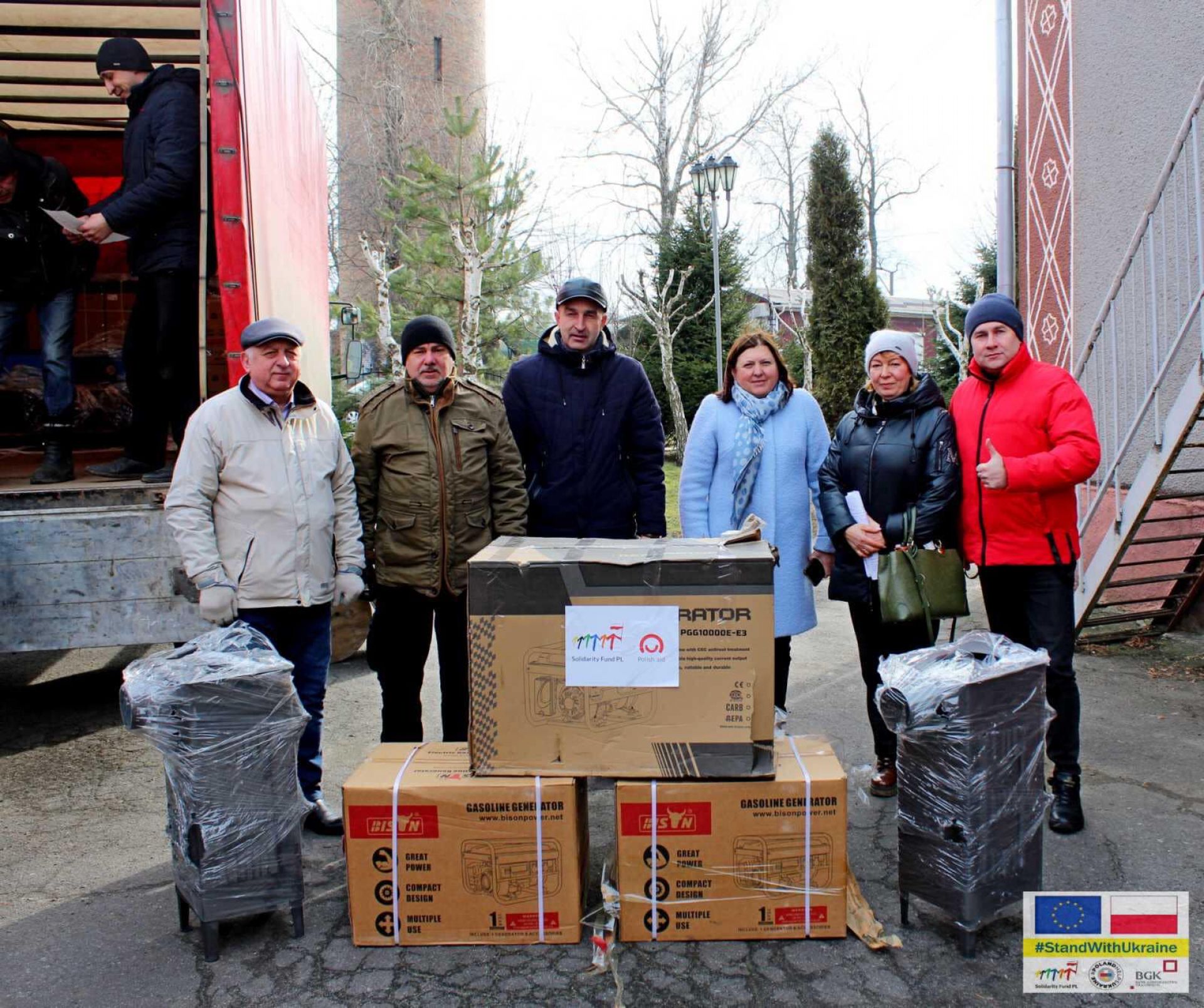 Фонду Міжнародної Солідарності передав допомогу у вигляді 24-х генераторів загальною вартістю 63155,10 злотих, а також 20 пічок загальною вартістю 14907,60 злотих.
