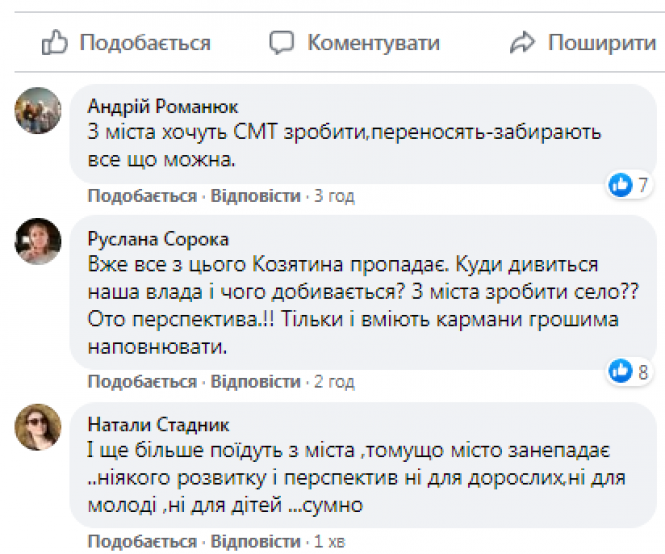 - Причина такого кроку полягає у небажанні керівництва Козятина допомогти у завершенні ремонту будівлі СБУ по вулиці Винниченка. Натомість Калинівка з початку року активно проводить ремонтні роботи в одній із своїх будівель і готове прийняти відділ СБУ у своєму місті в найближчі місяці. Козятин - важливий залізничний стратегічний вузол, через який перевозять значну кількість військової техніки, проїжджає велика кількість громадян, в тому числі ймовірно можуть діяти ворожі спецслужби, - йдеться в дописі