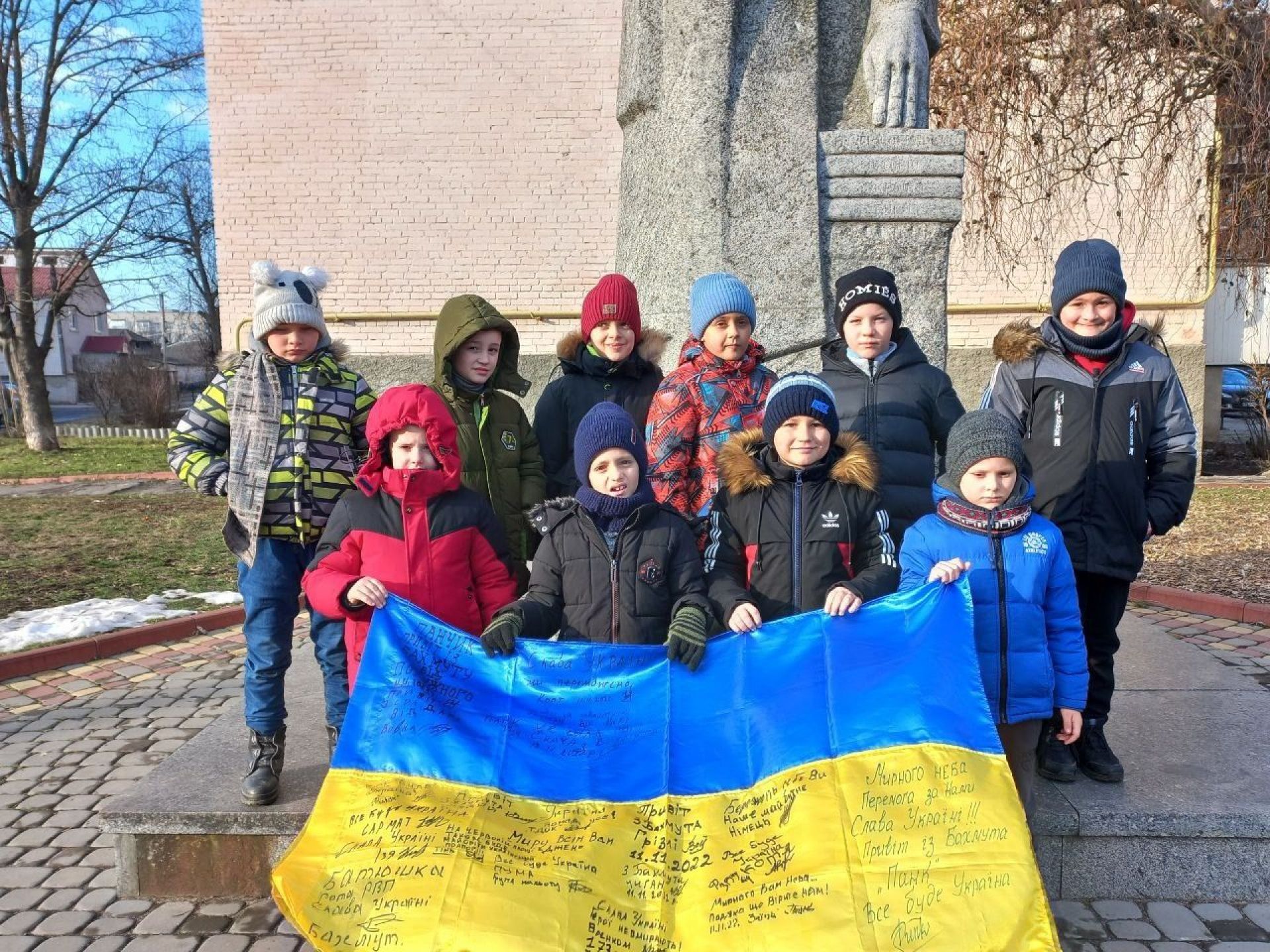 Козятинські школярі отримали прапор, який передали воїни з Бахмуту