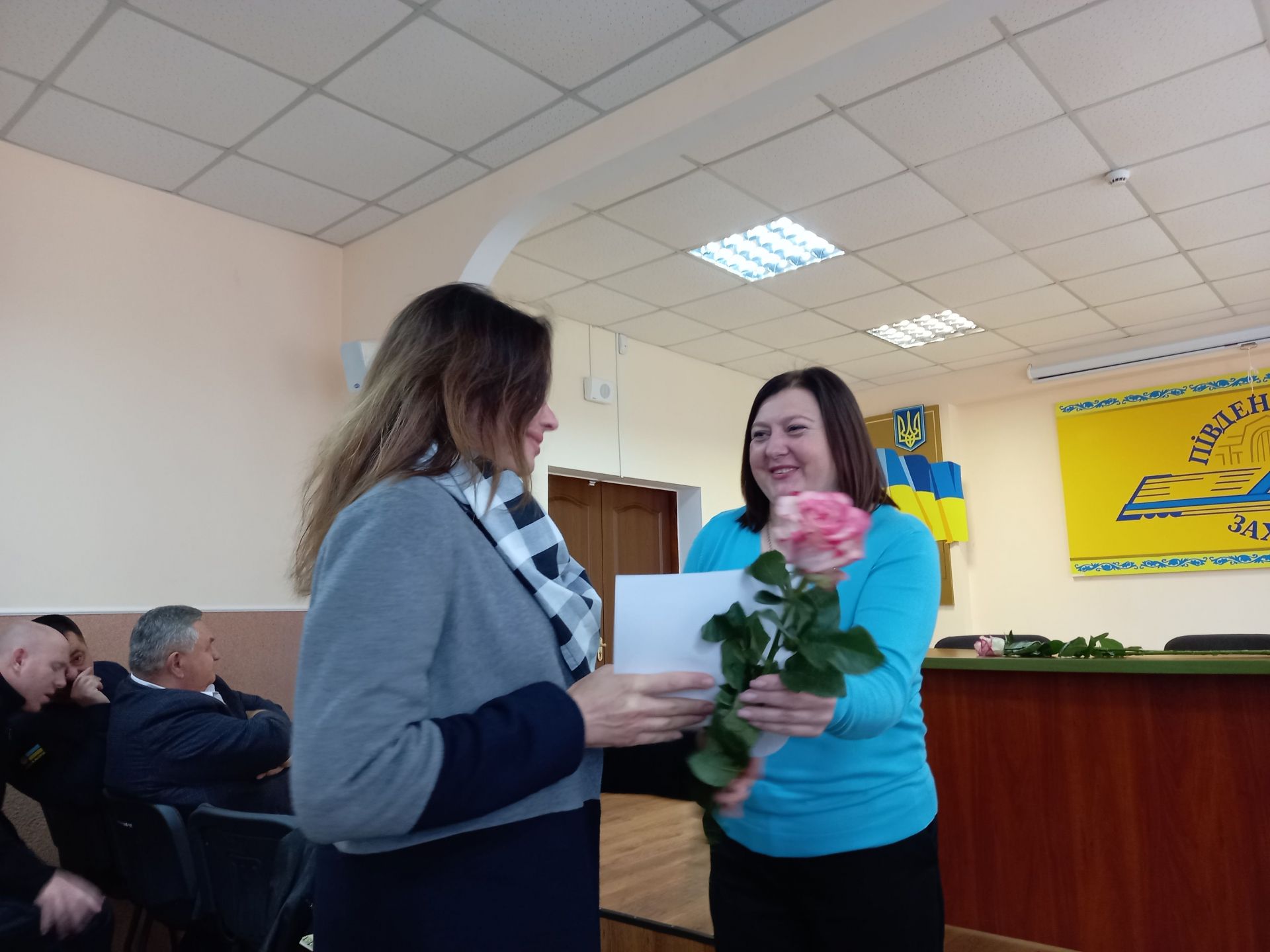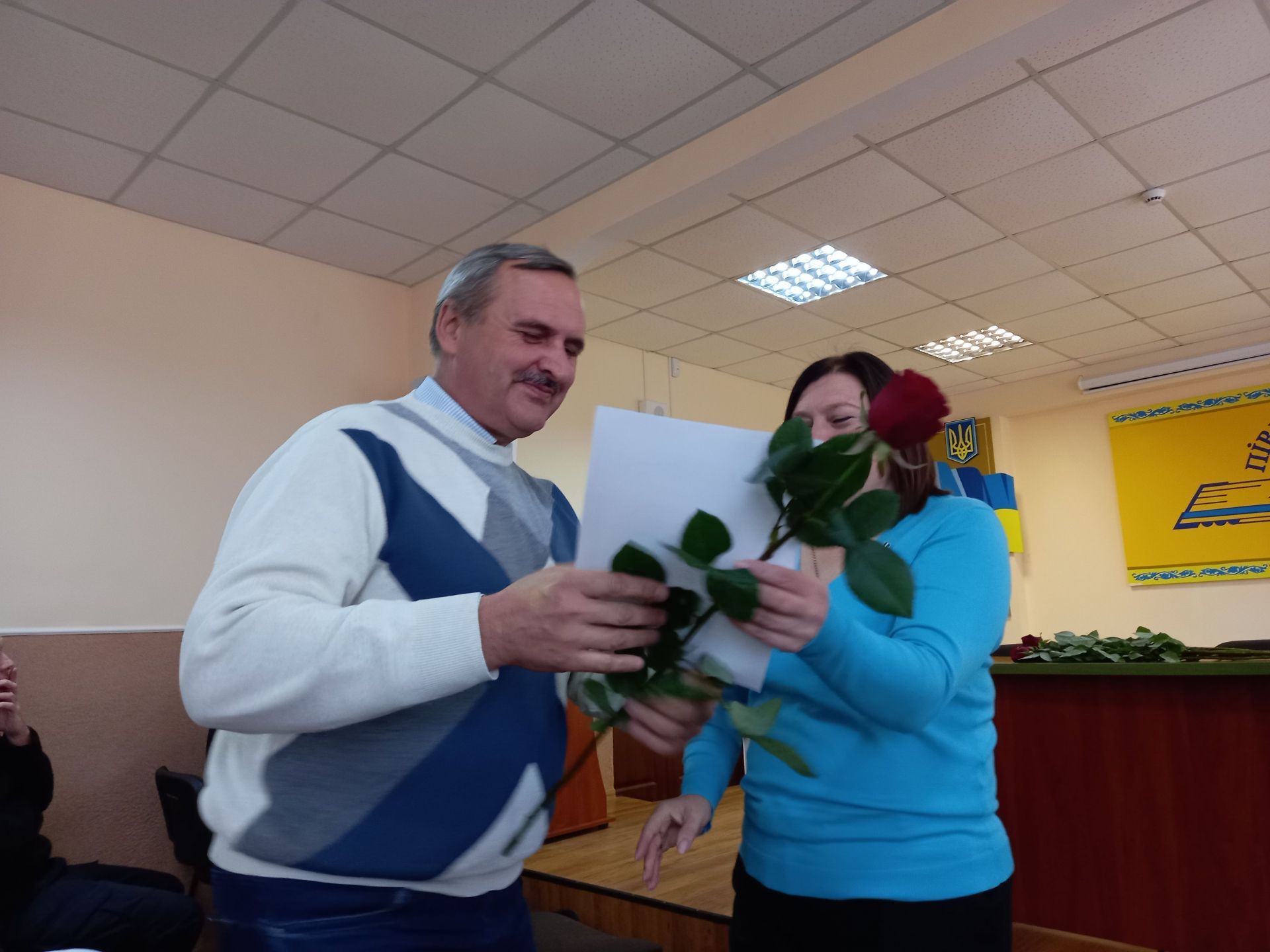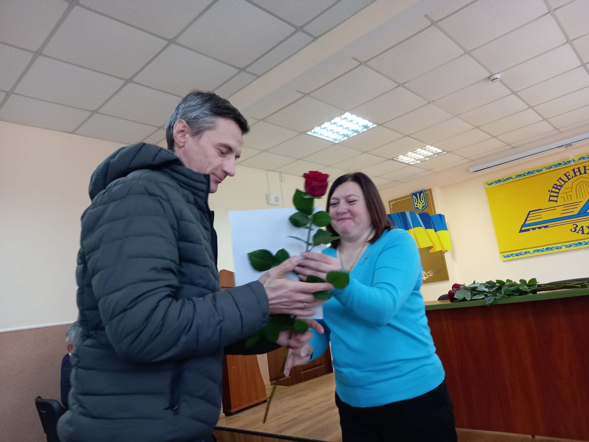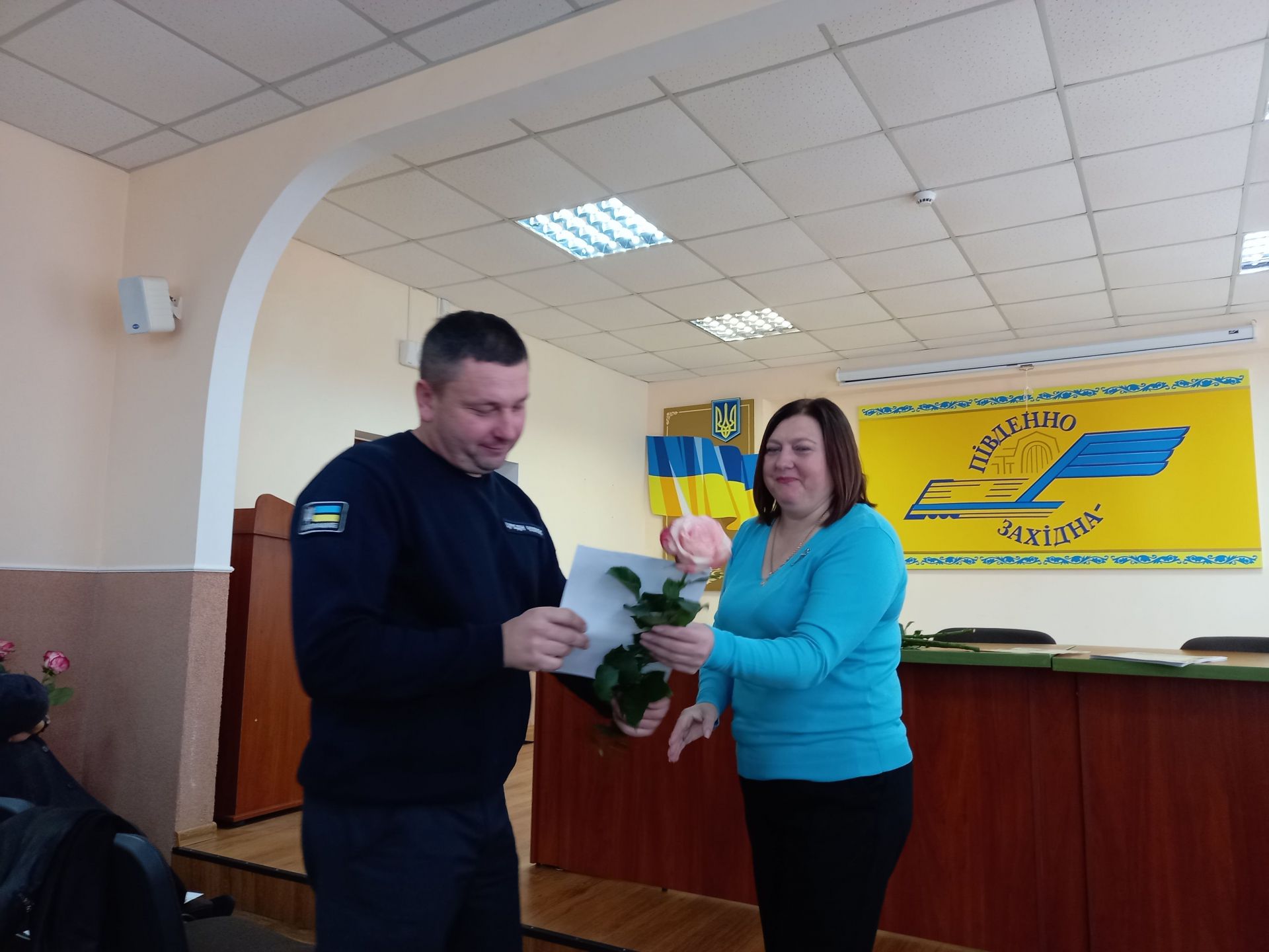 Після слів привітань та подяки перейшли до церемонії нагородження. Міський голова вручила грамоти міської ради та квіти працівникам залізничних підприємств. Із нагоди професійного свята нагородили: