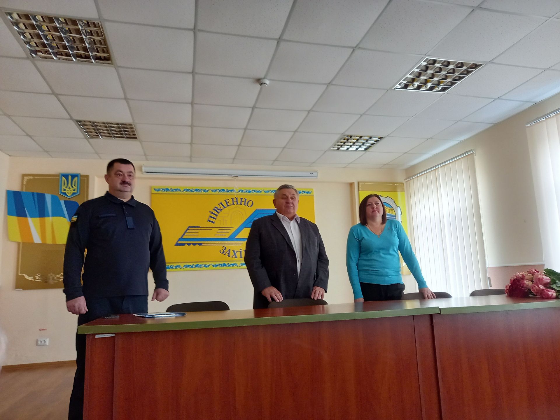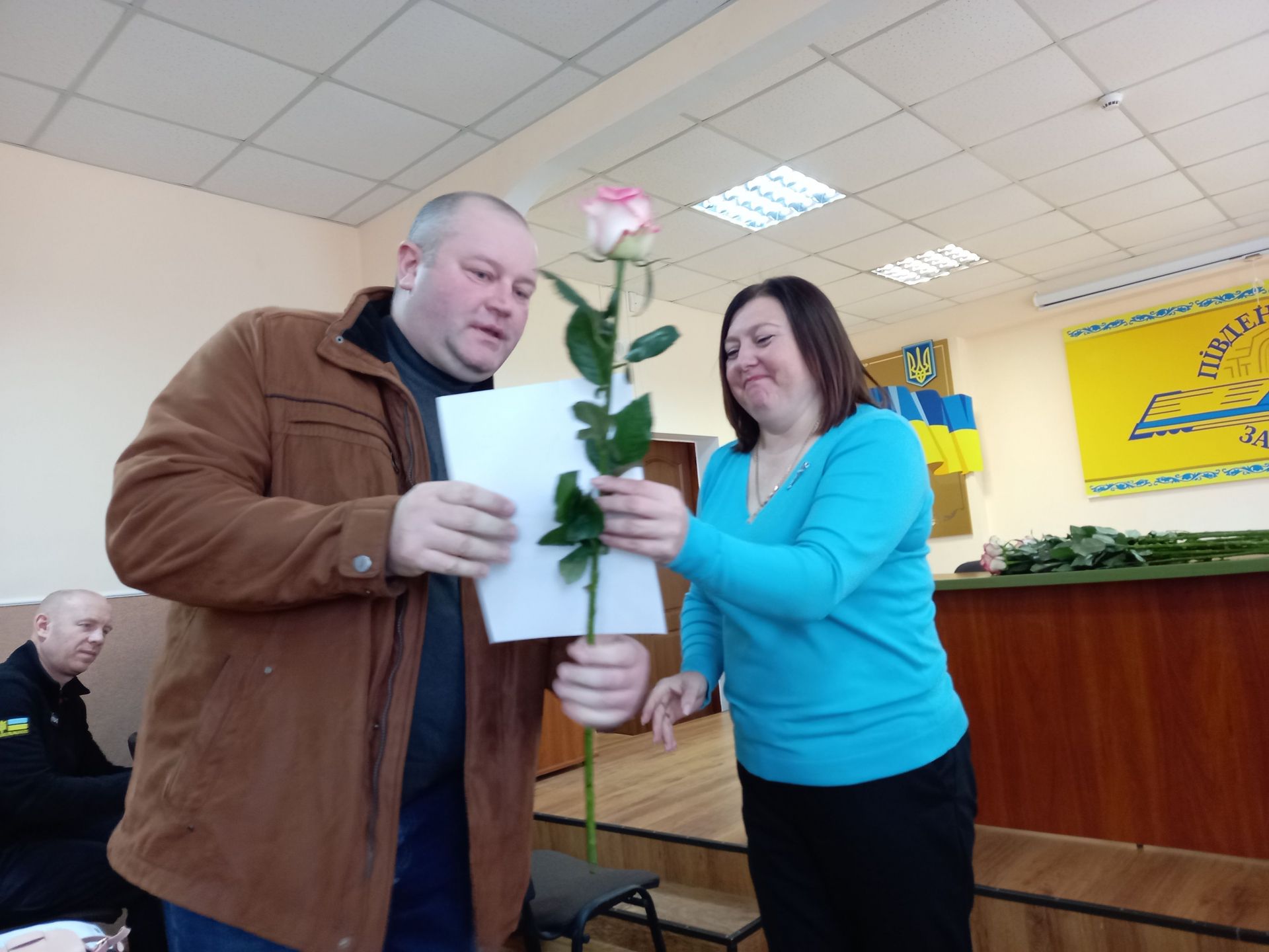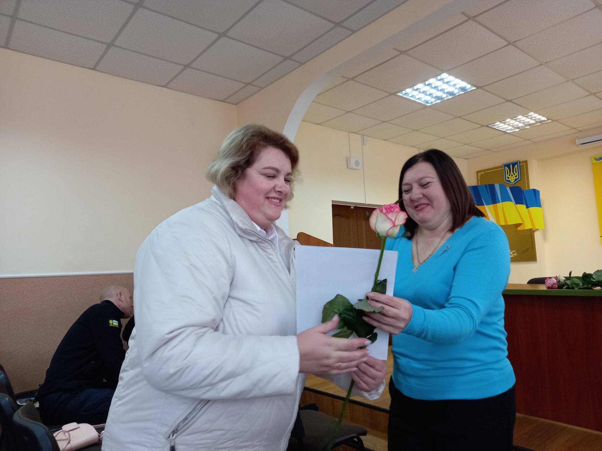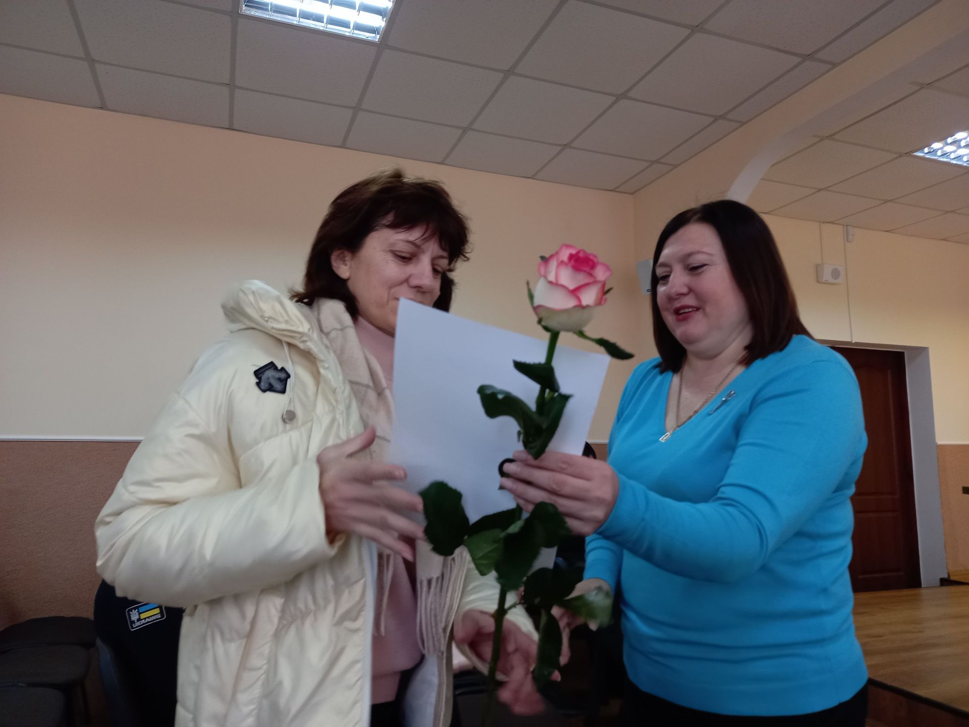 Після слів привітань та подяки перейшли до церемонії нагородження. Міський голова вручила грамоти міської ради та квіти працівникам залізничних підприємств. Із нагоди професійного свята нагородили: