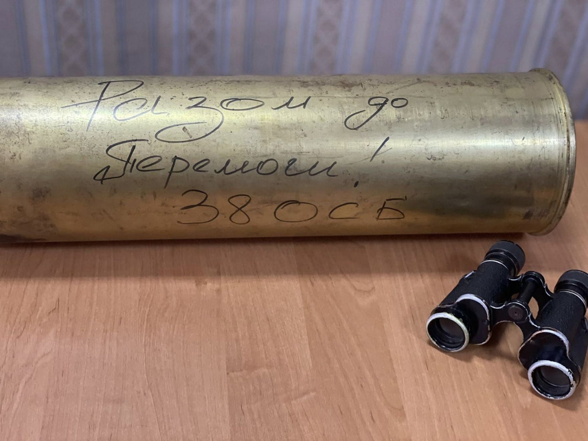 Козятинській гімназії № 9 передали цінні подарунки з фронту — гільзу з адресним підписом та бінокль