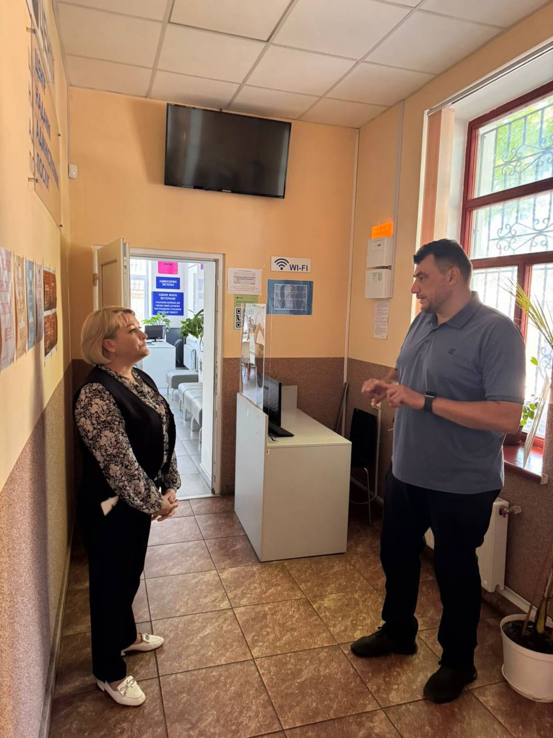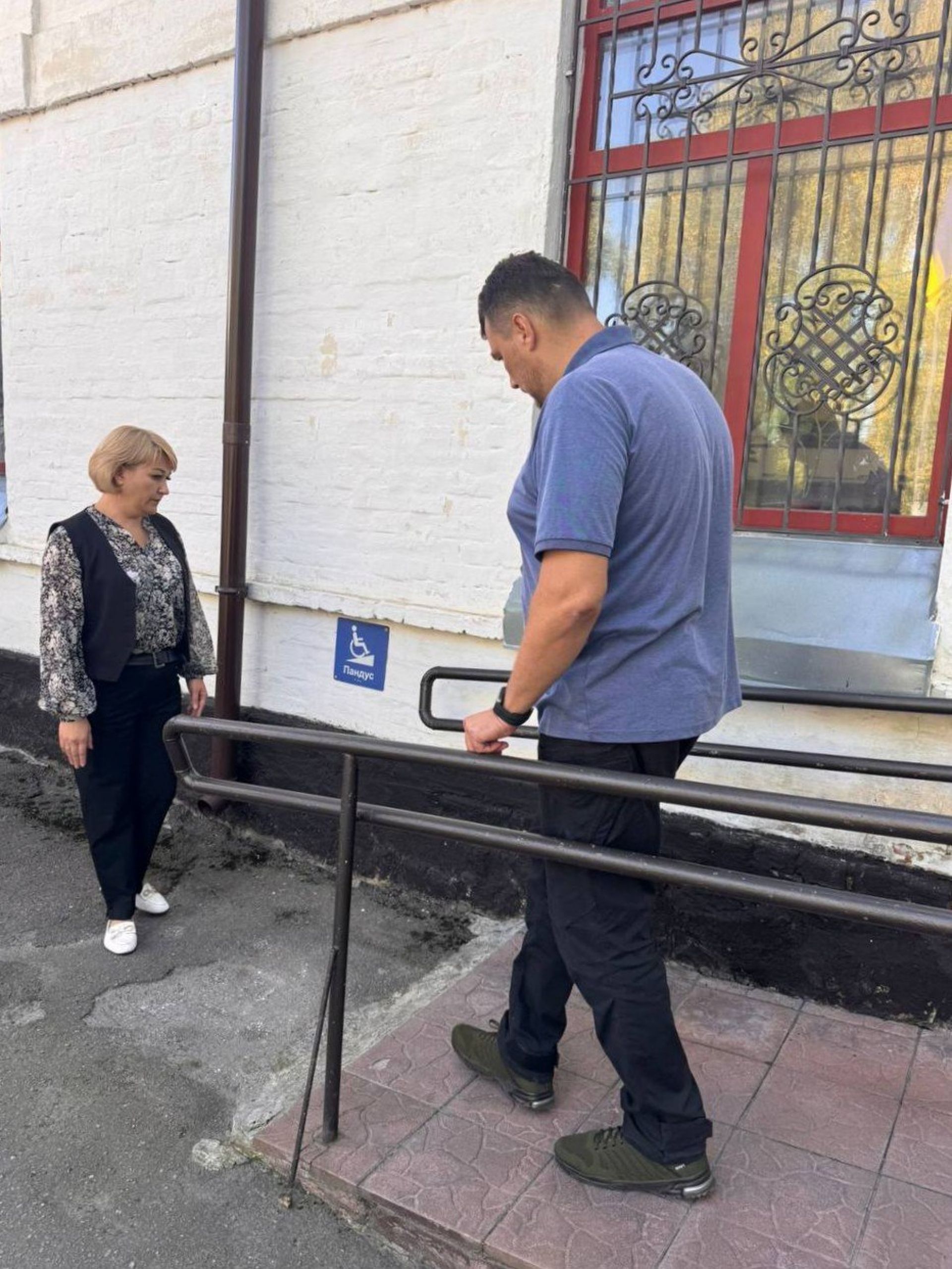 Заступник начальника Хмільницької районної військової адміністрації Олександр Пузир провів моніторинг доступності Центру надання адміністративних послуг у Козятині для людей з інвалідністю та інших маломобільних груп населення.