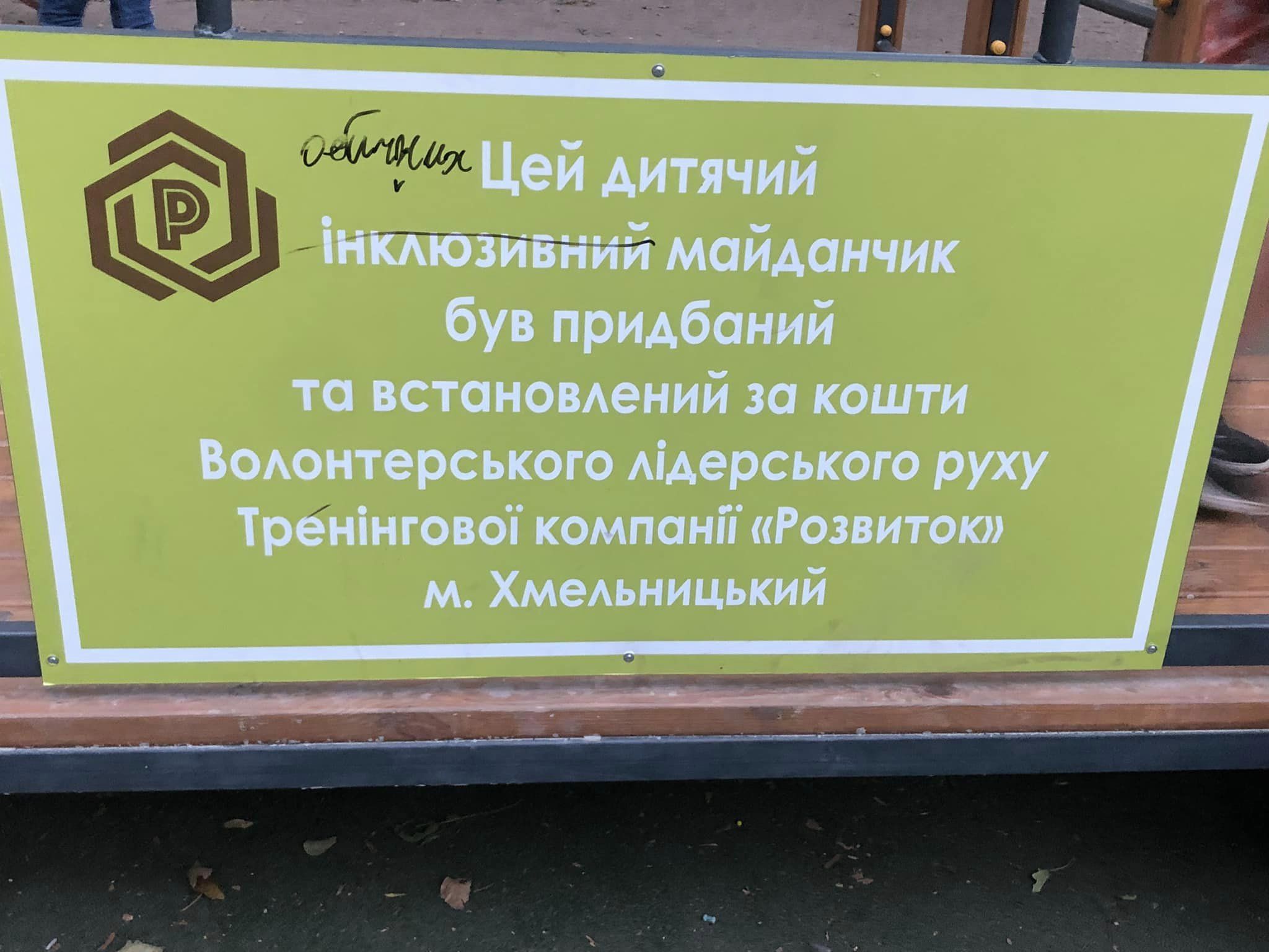 До речі, слово «інклюзивний» на табличці вже закреслили маркером і написали «обичний». Даруйте за росіянізм, це пряма цитата.