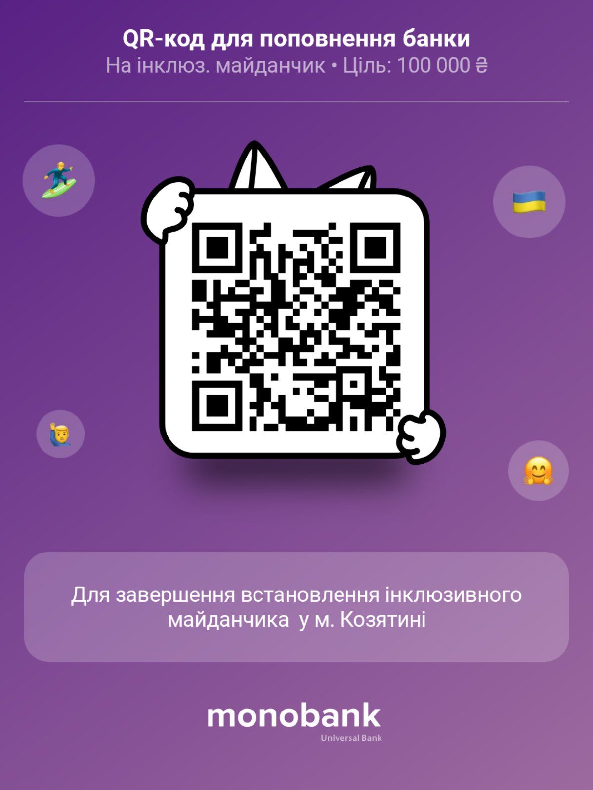 Усю суму, необхідну для завершення дитячого майданчика з елементами інклюзії, волонтери поки не зібрали, тож збір продовжується. Адже потрібно не лише розрахуватися з підрядниками, а й ремонтувати те, що вже зламали. Реквізити для поповнення