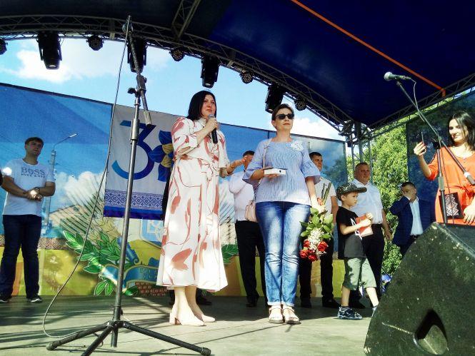 Під час офіційної частини мамі загиблого на війні Максима Олексюка і дружині колишнього очільника Козятина Михайла Висоцького вручили нагороди «Почесний громадянин міста Козятин».