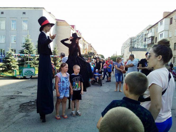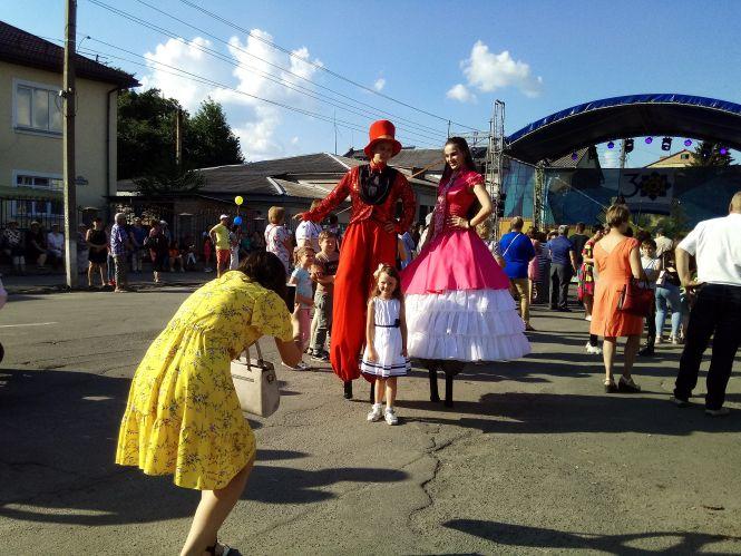 Паралельно із концертом на площі працювали ходулісти й міми. Козятинчани залюбки робили з ними фотографії.